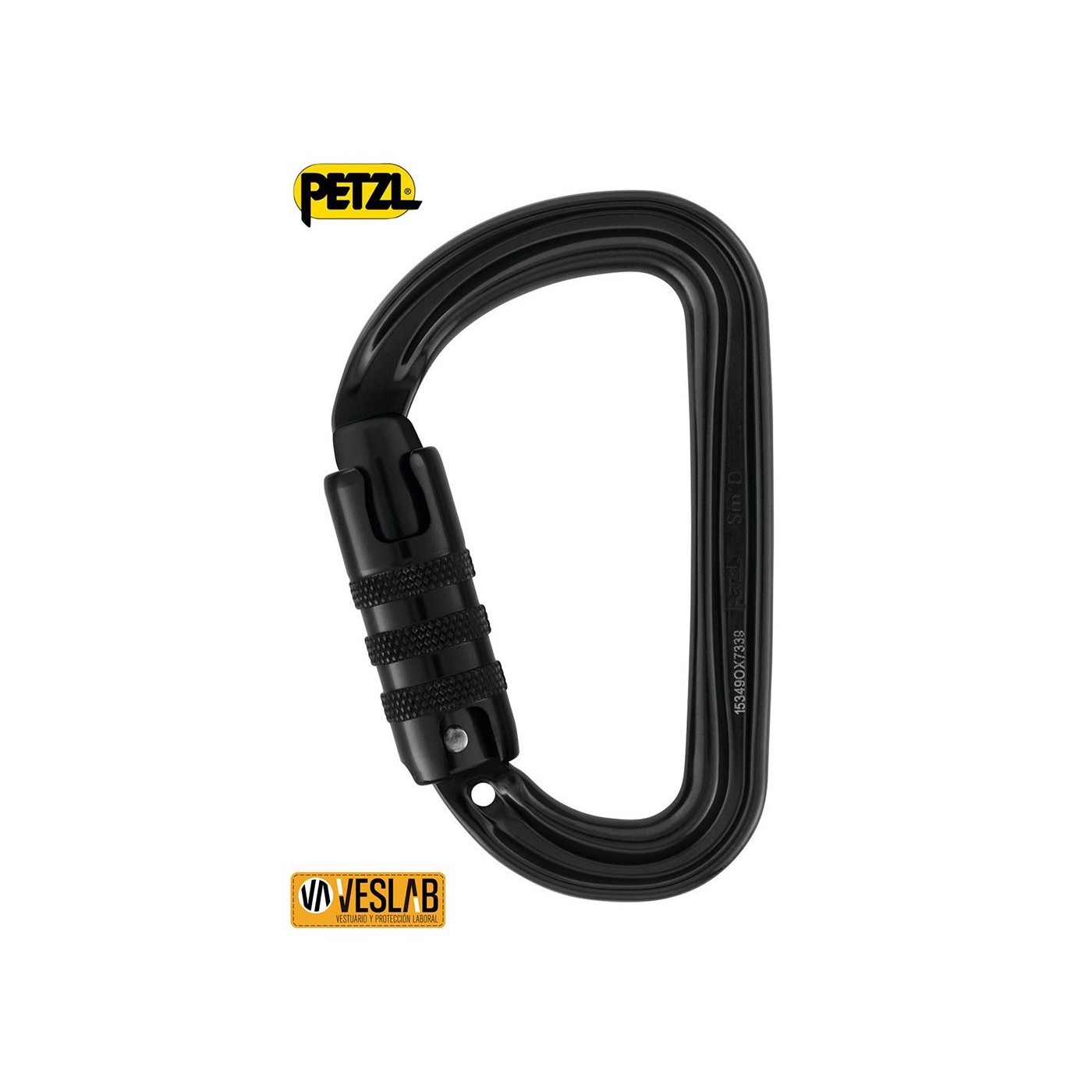 - SCREW-LOCK: bloqueig manual a rosca amb indicador vermell visible quan el mosquetó no està bloquejat.