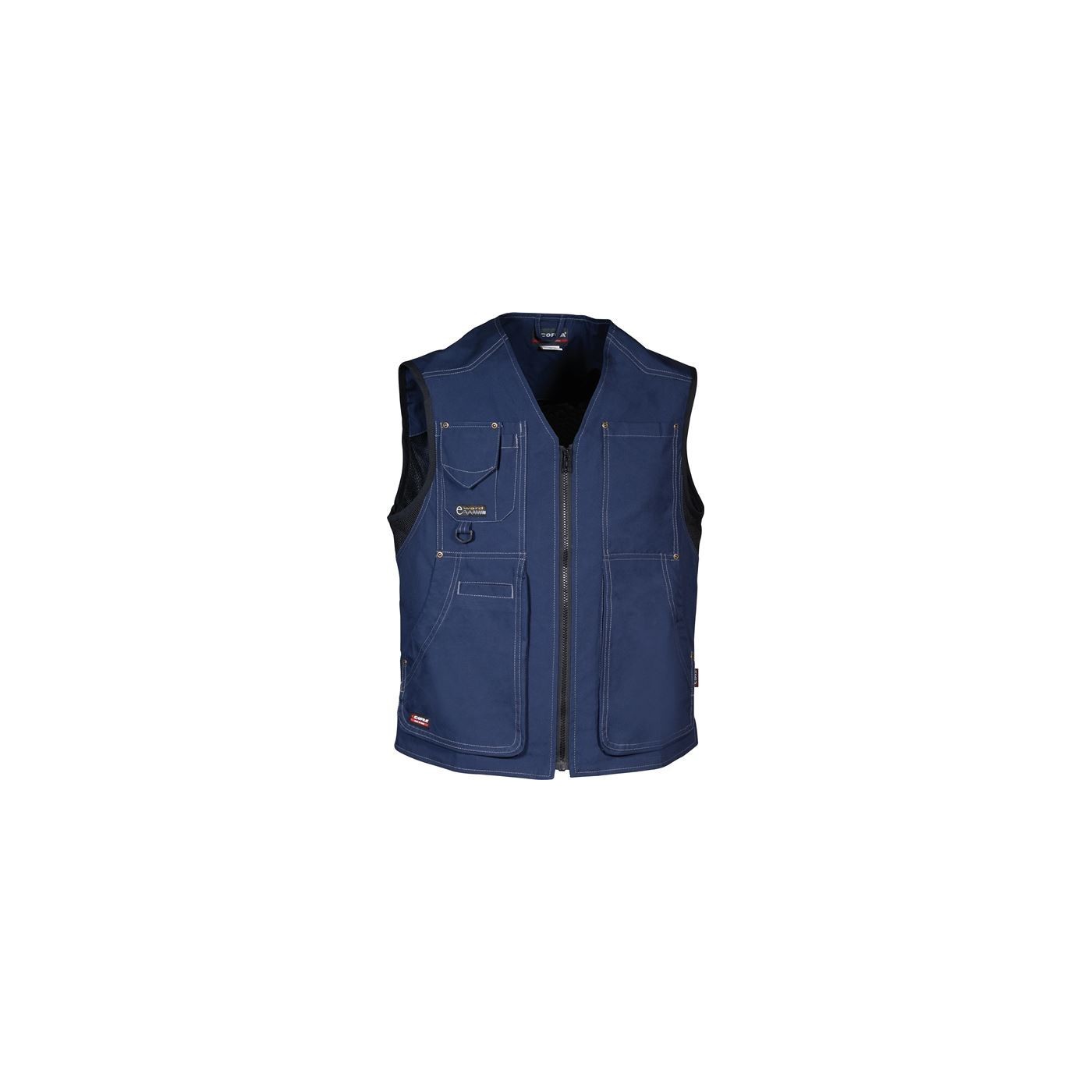 Aquest armilla Cofra de la línia CANVAS garanteixen la màxima transpirabilitat i comfort durant tot el dia: són peces realitzades en 100% cotó amb inserits en xarxa i en Cooldry que afavoreixen l'assecat de la suor. La particular tècnica del teixit Canvas garanteix una resistència a les abrasions i estirades que, unides a la sòl.lida construcció reforçada, característica de les peces COFRA Workwear, permet a la peça durar en el temps molt més que les normals peces de cotó.