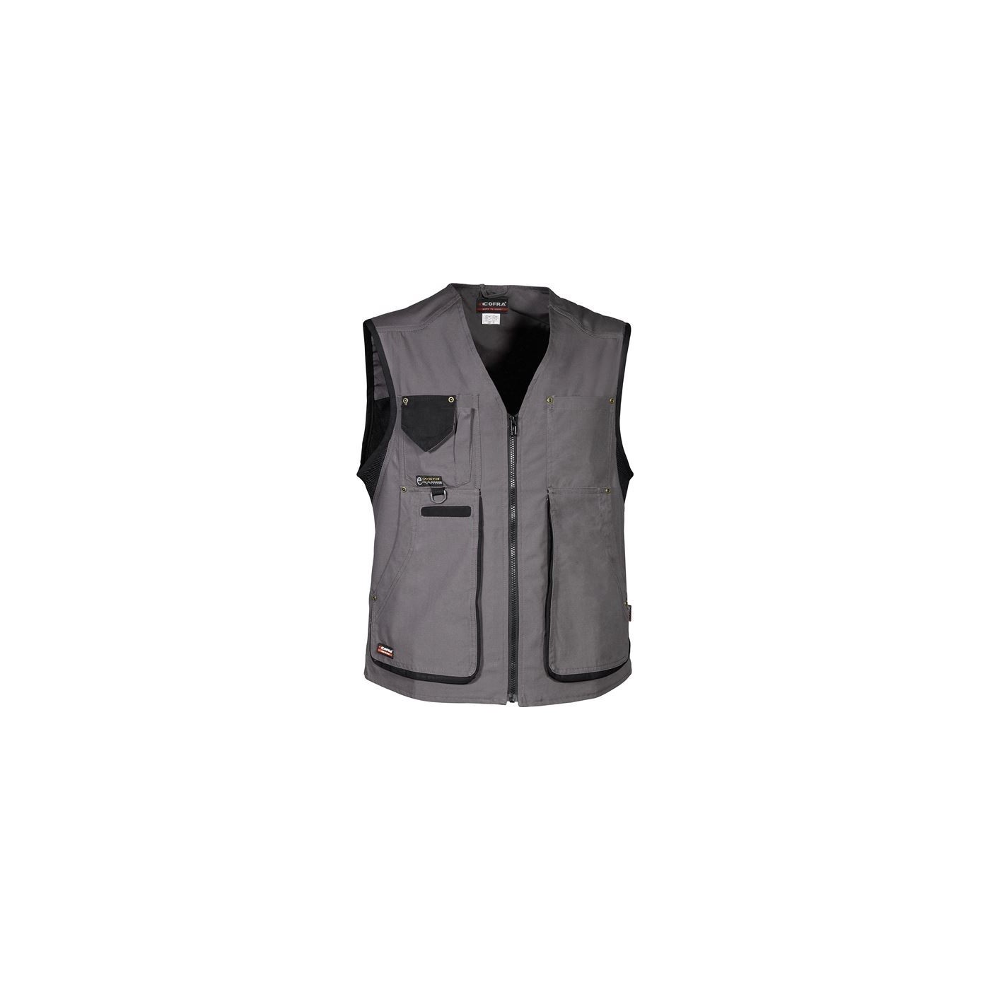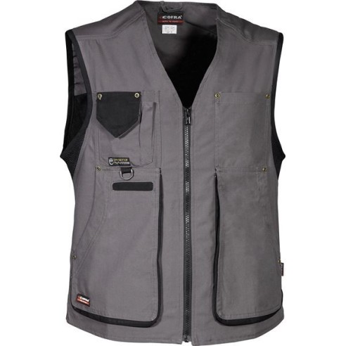 Aquest armilla Cofra de la línia CANVAS garanteixen la màxima transpirabilitat i comfort durant tot el dia: són peces realitzades en 100% cotó amb inserits en xarxa i en Cooldry que afavoreixen l'assecat de la suor. La particular tècnica del teixit Canvas garanteix una resistència a les abrasions i estirades que, unides a la sòl.lida construcció reforçada, característica de les peces COFRA Workwear, permet a la peça durar en el temps molt més que les normals peces de cotó.