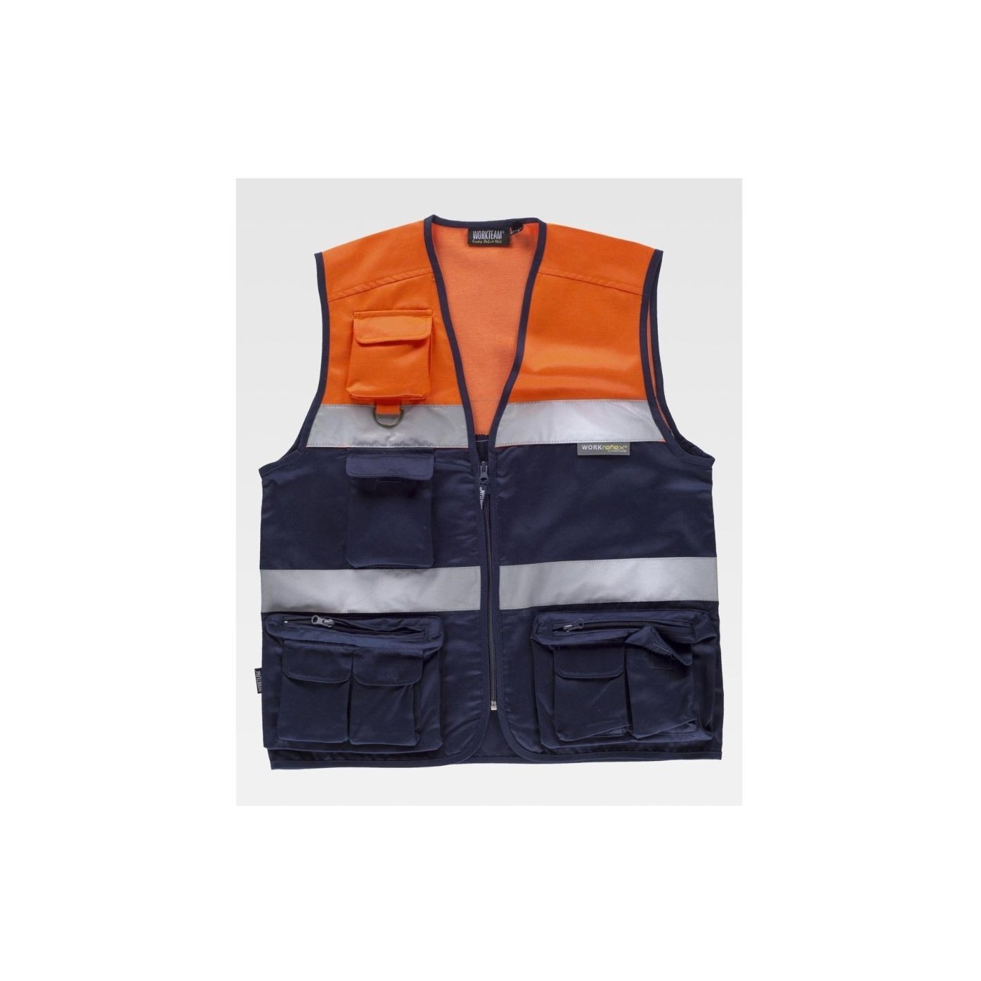 Armilla safari amb bandes reflectants per a màxima visibilitat. Amb múltiples butxaques, tanca de cremallera i argolla metàl·lica. Ideal per a feines que requereixen seguretat i funcionalitat.