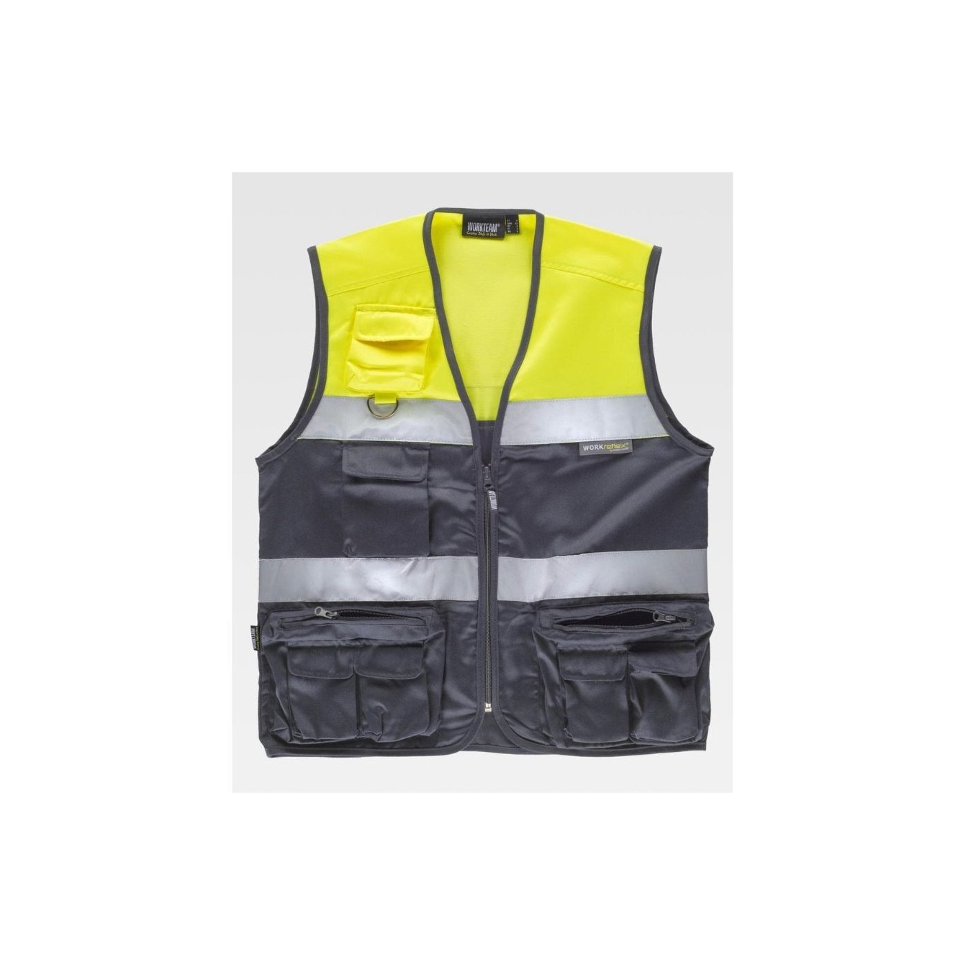 Armilla safari amb bandes reflectants per a màxima visibilitat. Amb múltiples butxaques, tanca de cremallera i argolla metàl·lica. Ideal per a feines que requereixen seguretat i funcionalitat.