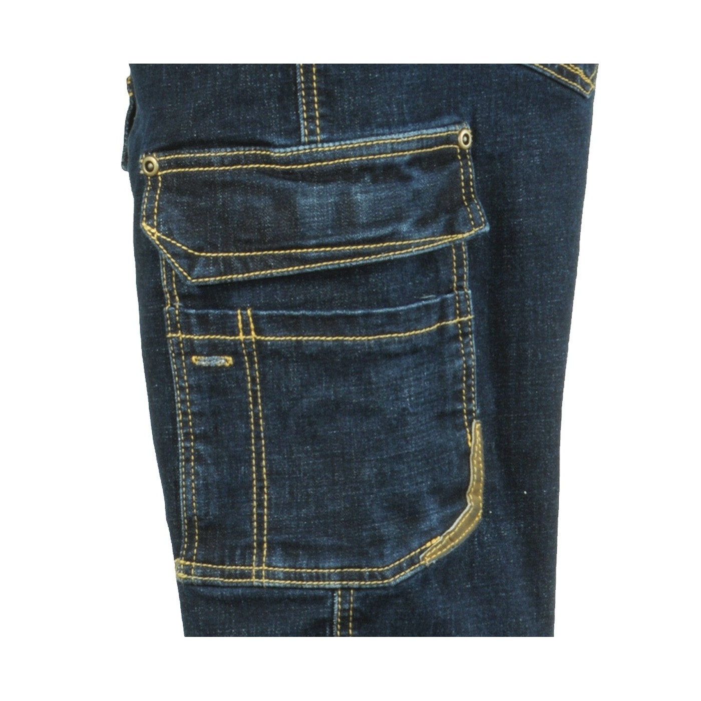 DESCRIPCIÓ: 2 butxaques davanters, 2 butxaques del darrere, butxaca porta metre, triple costura a les parts que es desgasten més ràpidament, butxaca lateral esquerre amb tapeta, butxaca porta monedes, butxaca porta mòbil, bona resistència a les abrasions,