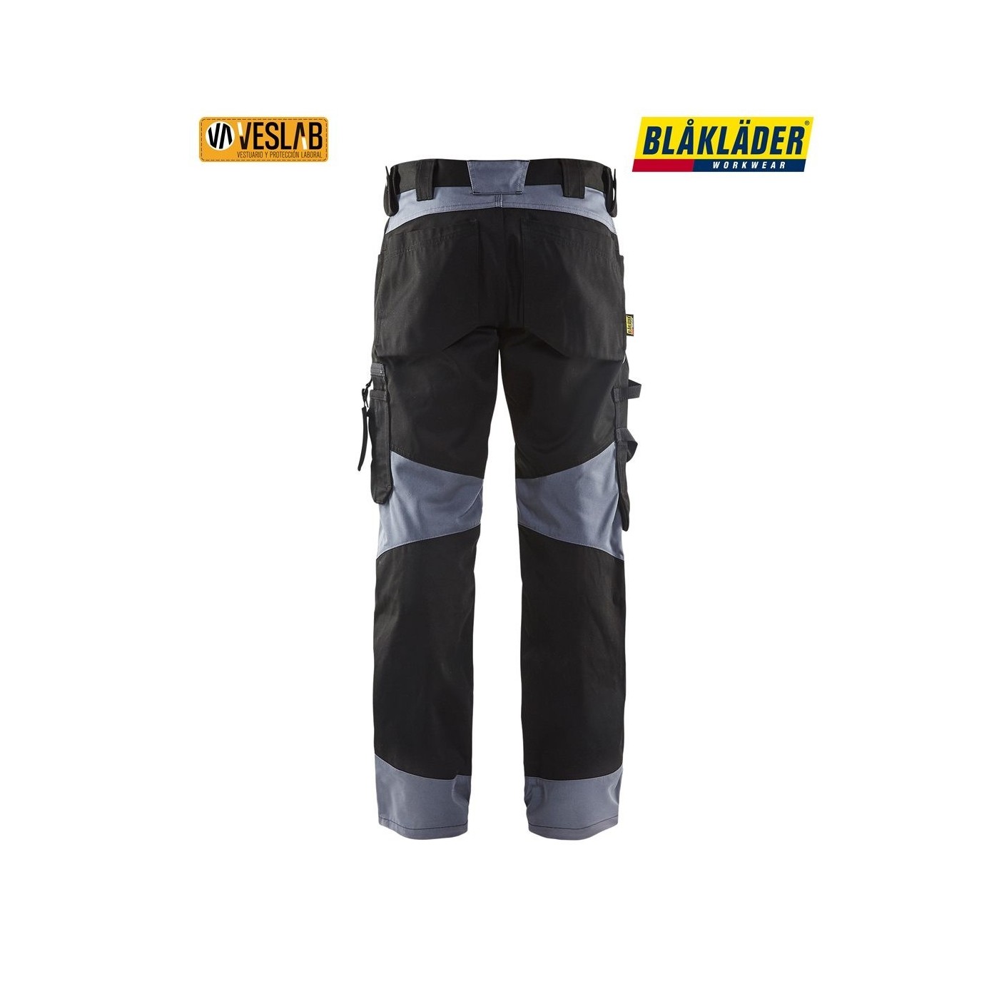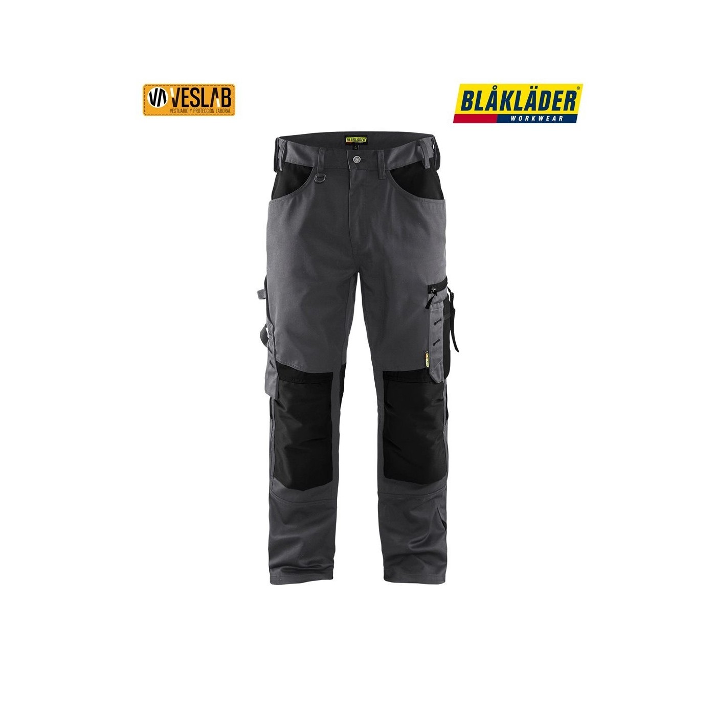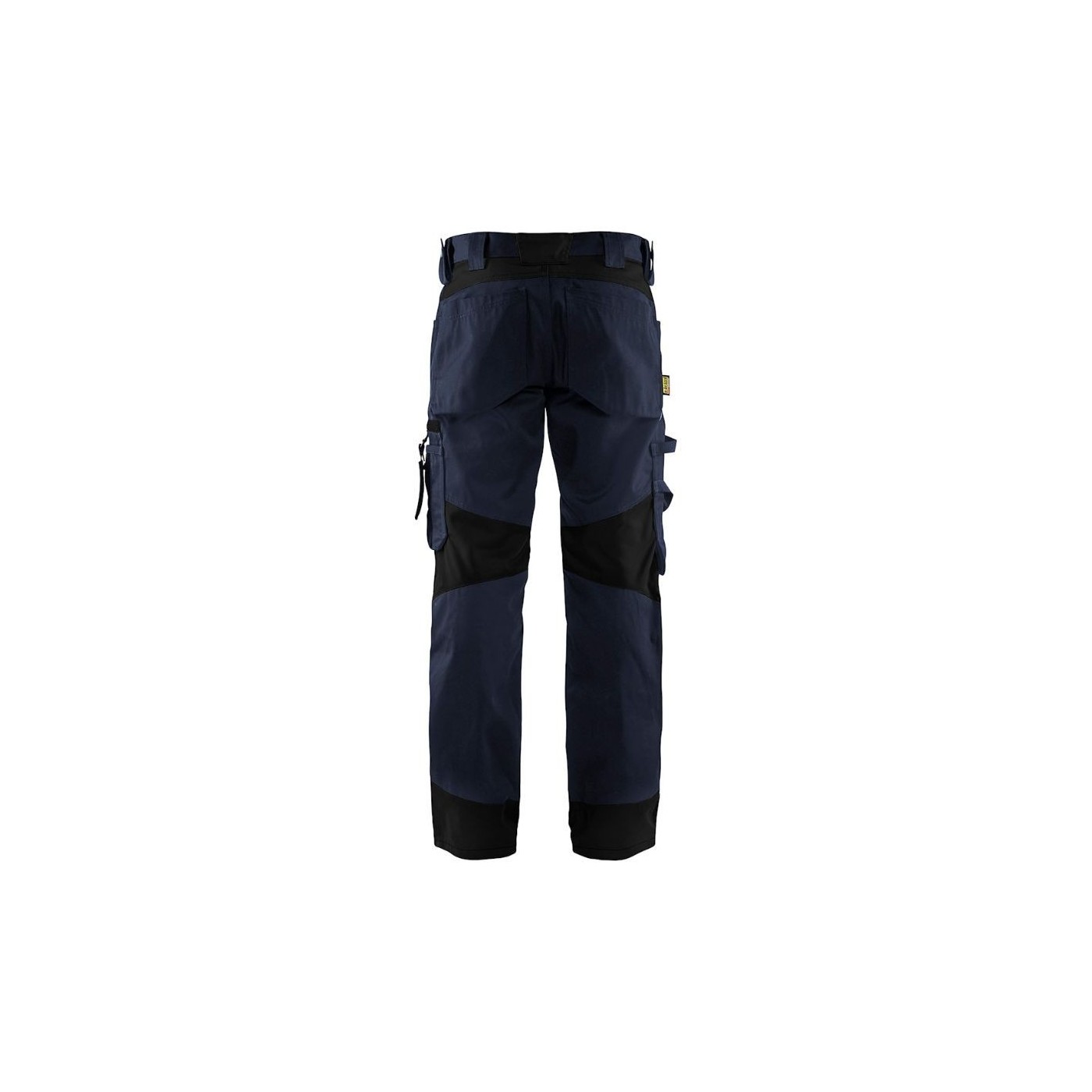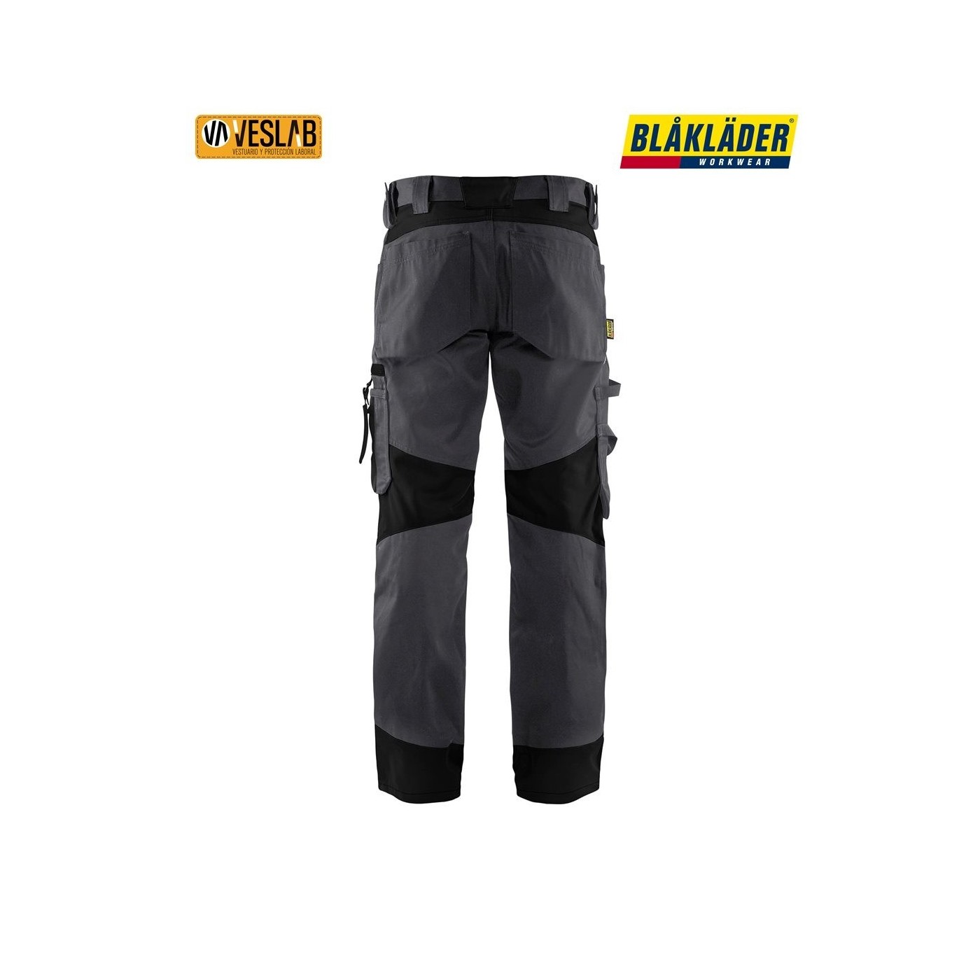 Dues butxaques del darrere amb manxa i corretja per porta martells, així com la butxaca per regla reforçat, butxaca per bolígraf i portafulles. Les cames doblegades prèviament proporcionen un ajust excel·lent.