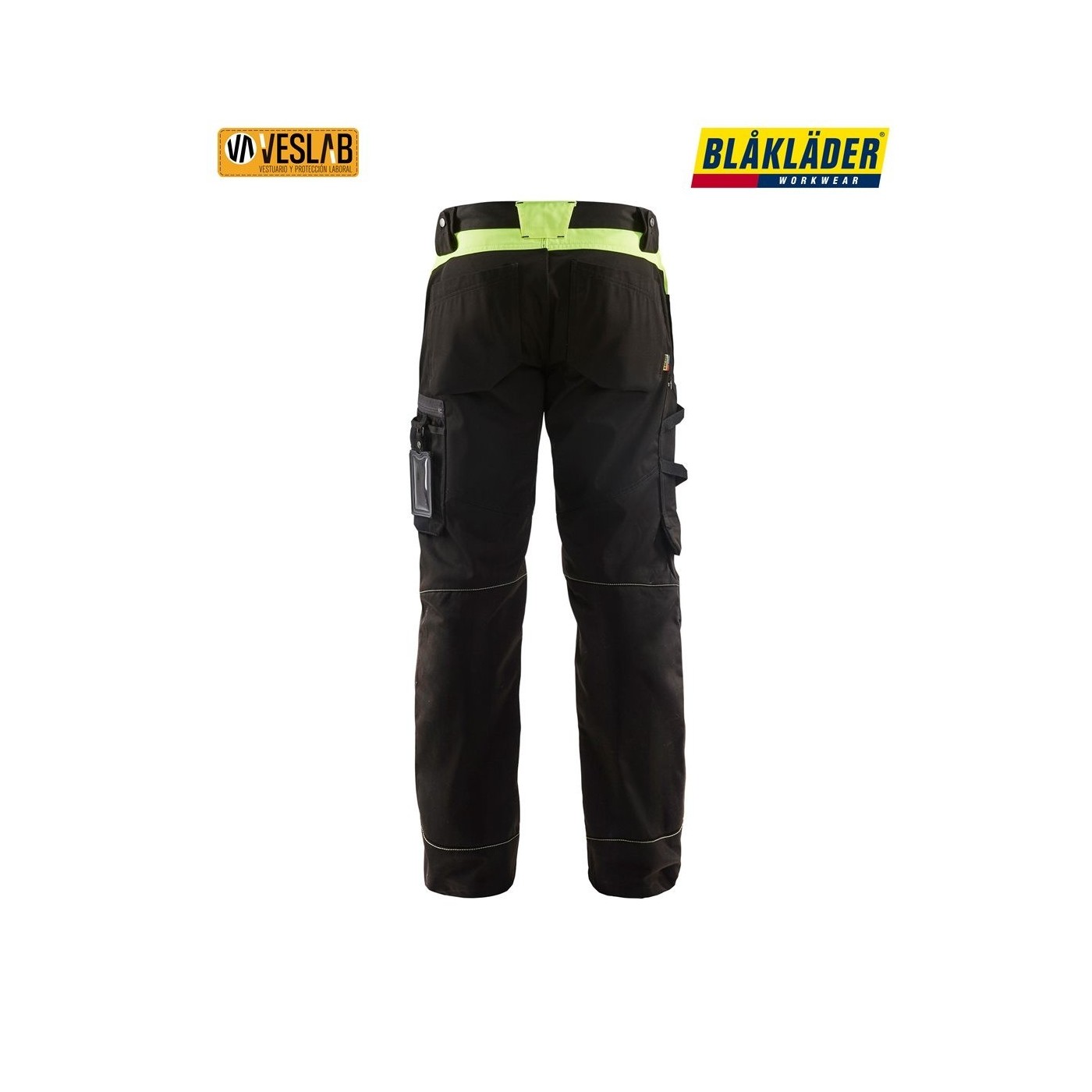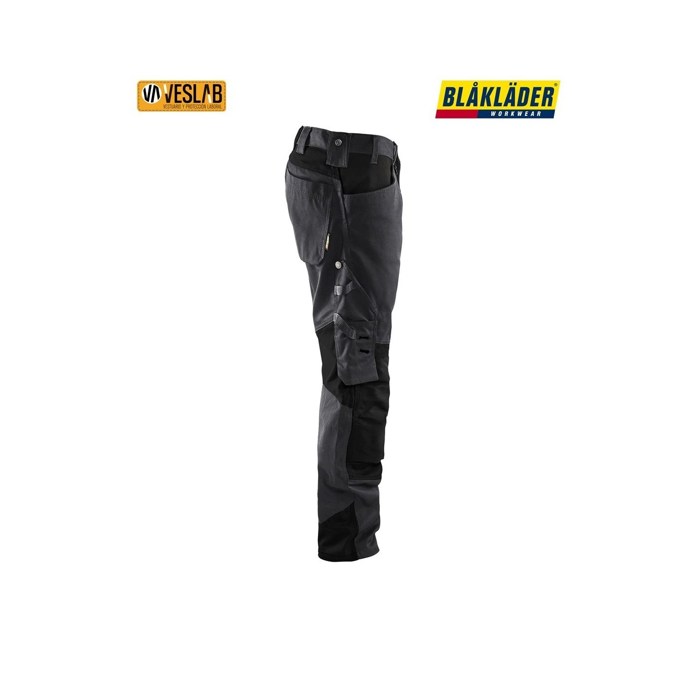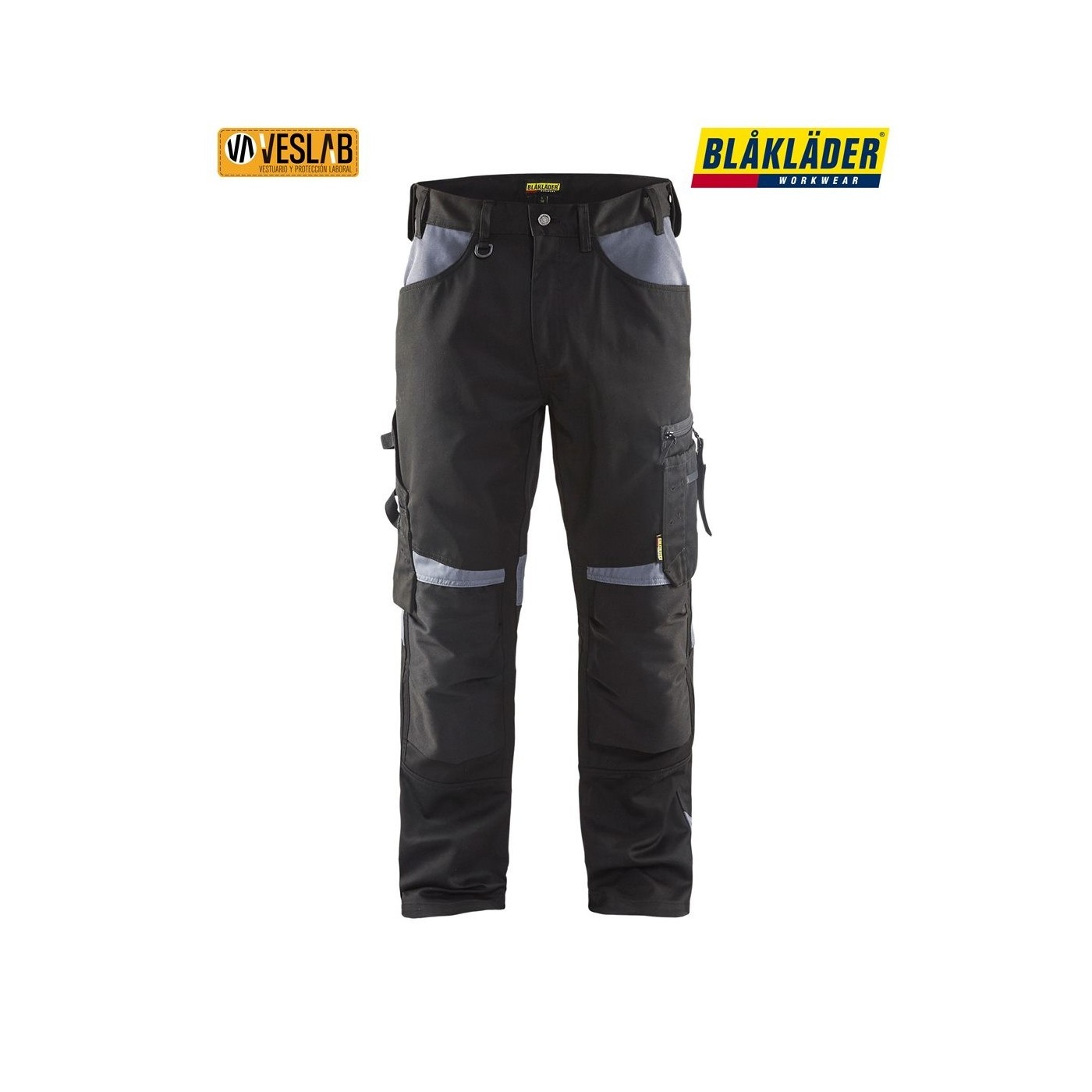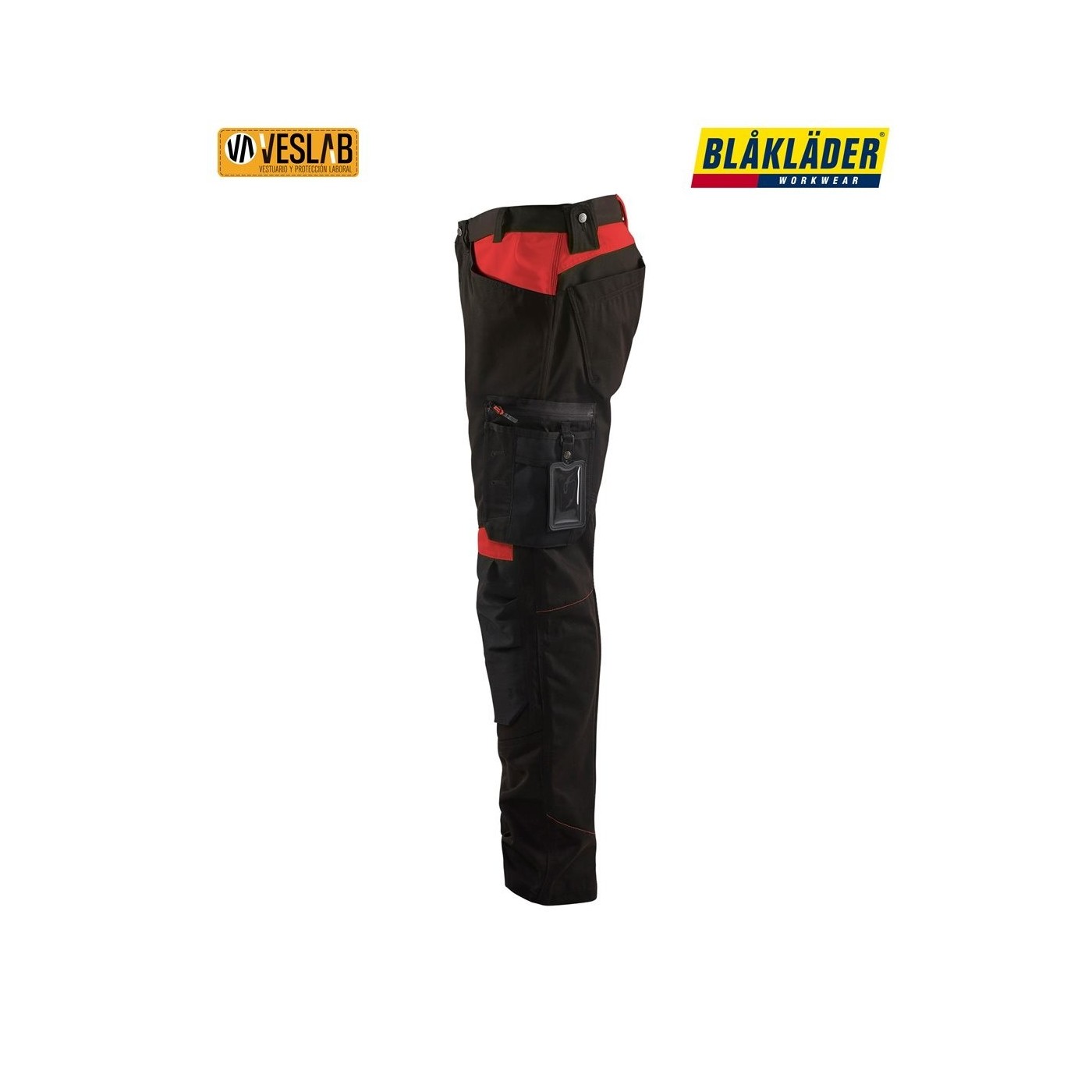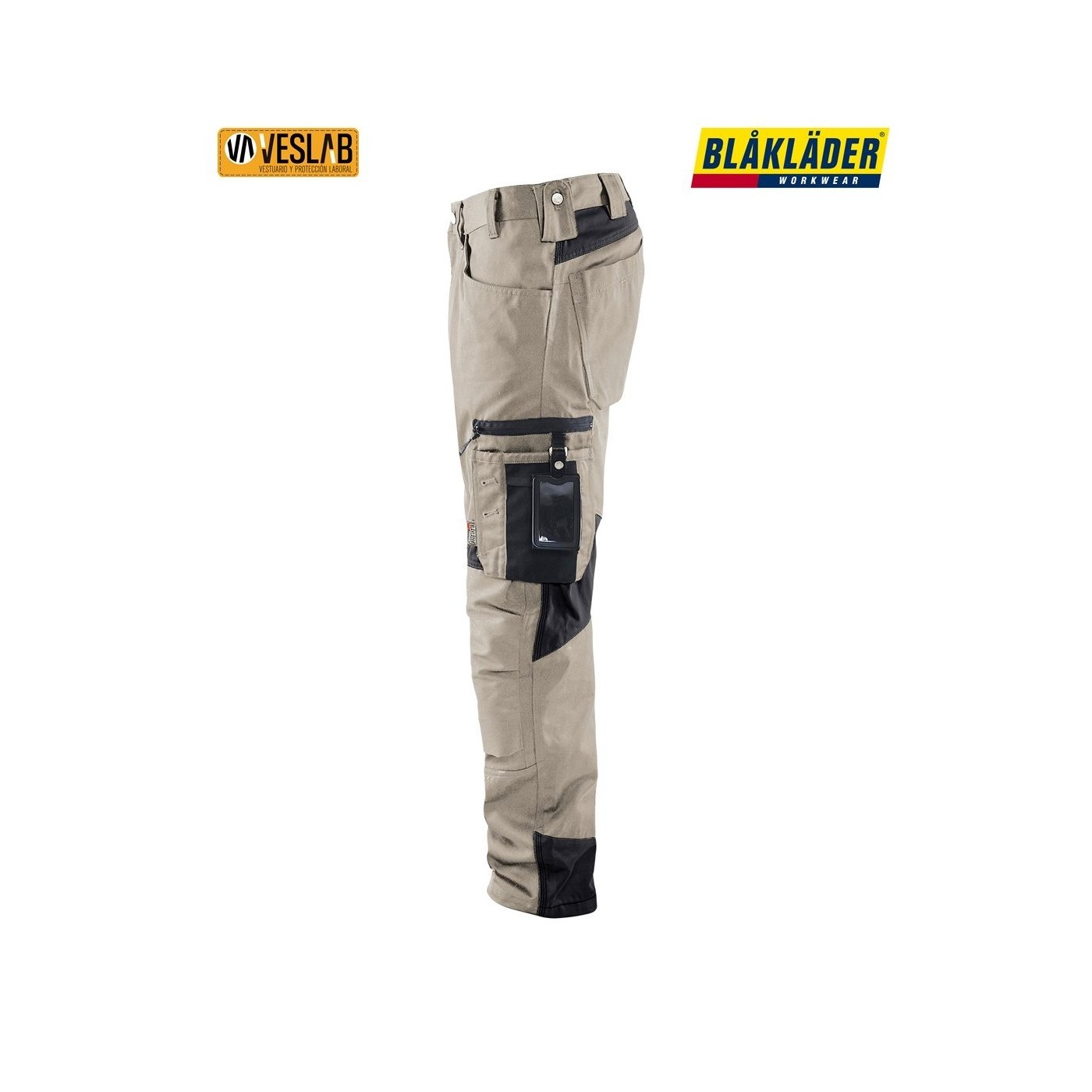 Dues butxaques del darrere amb manxa i corretja per porta martells, així com la butxaca per regla reforçat, butxaca per bolígraf i portafulles. Les cames doblegades prèviament proporcionen un ajust excel·lent.