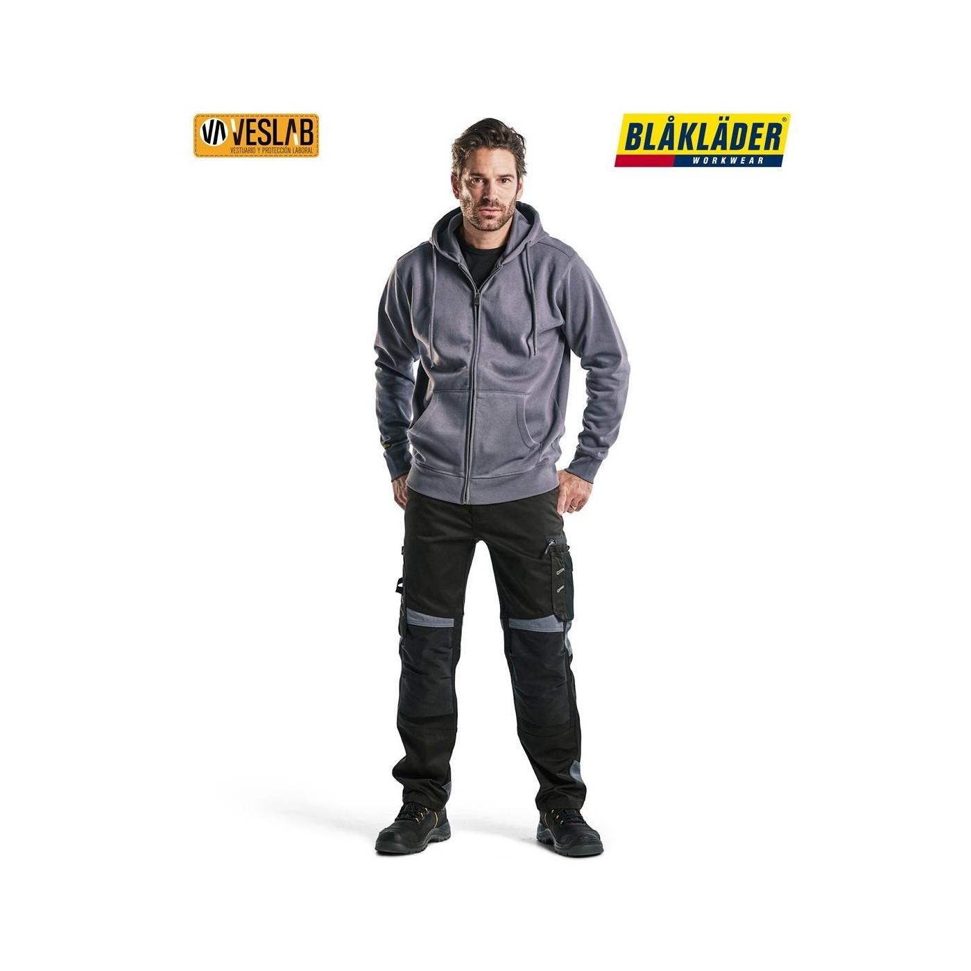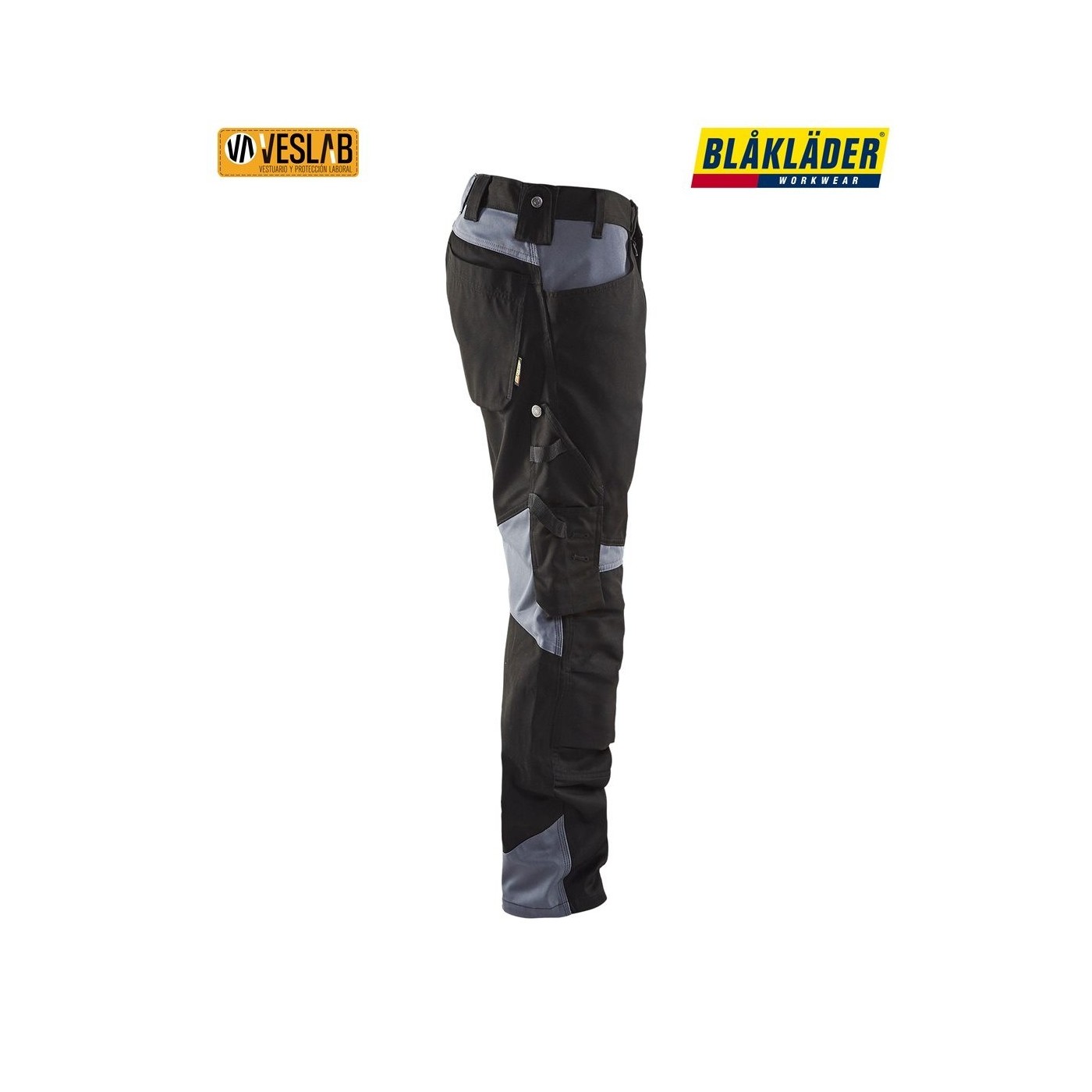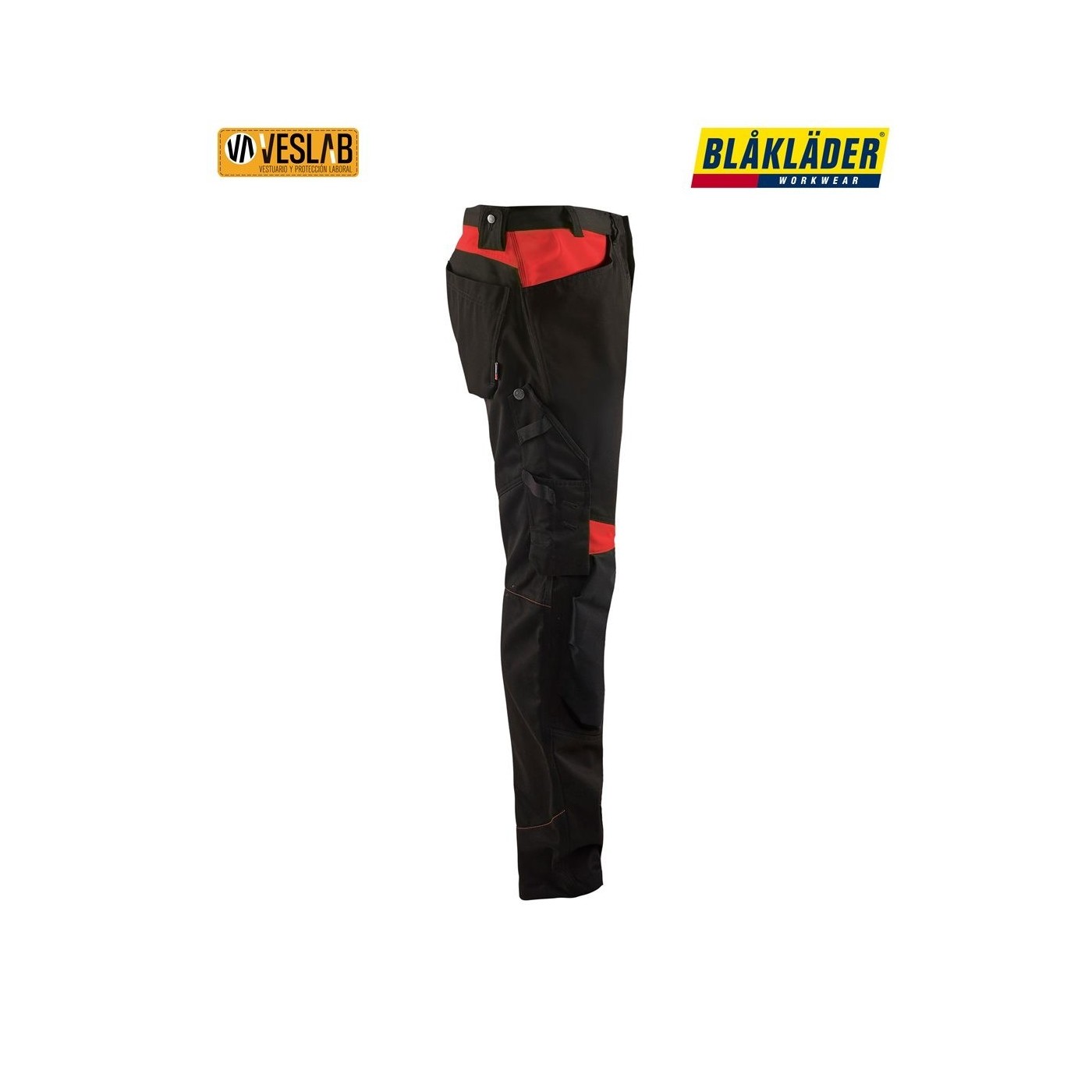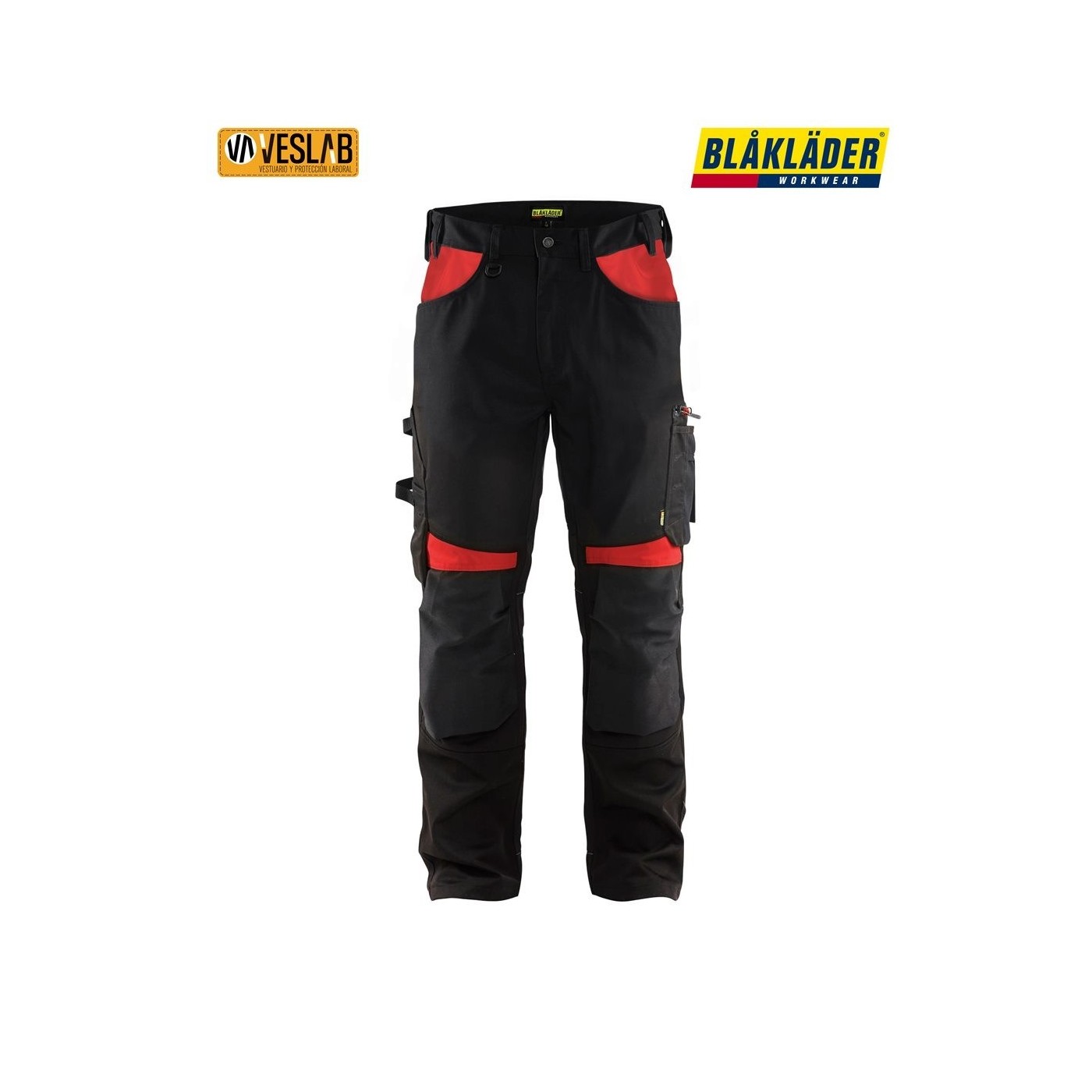 Dues butxaques del darrere amb manxa i corretja per porta martells, així com la butxaca per regla reforçat, butxaca per bolígraf i portafulles. Les cames doblegades prèviament proporcionen un ajust excel·lent.