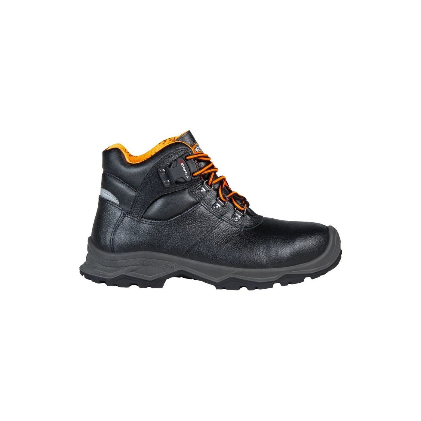 El calçat K2 S3S HI CI SC SR HRO FO LG de COFRA és una sabata de seguretat dissenyada per a la indústria siderúrgica. Compleix amb la norma EN ISO 20345:2022 i ofereix característiques com a protecció contra la calor, el fred i els impactes, així com resistència a la perforació. Està fabricat amb materials d'alta qualitat, incloent-hi una puntera de fibra de vidre no metàl·lica i una sola de poliuretà/goma de nitril resistent a altes temperatures. És còmode, transpirable i de fàcil despreniment.