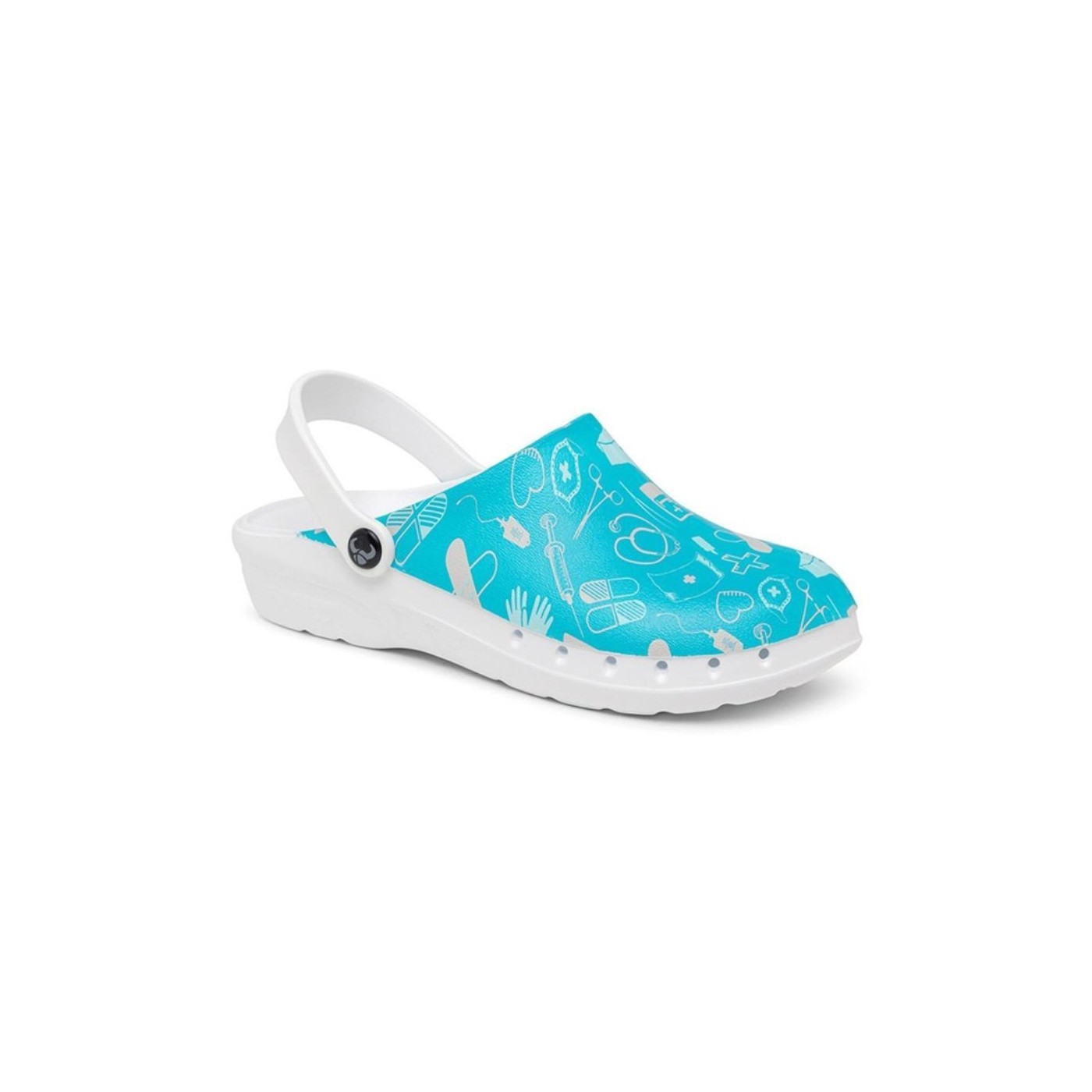 Es tracta d'un esclop sanitari unisex estampat i molt versàtil, a més de lleuger. Ofereix la màxima comoditat, absorbint impactes durant la petjada.