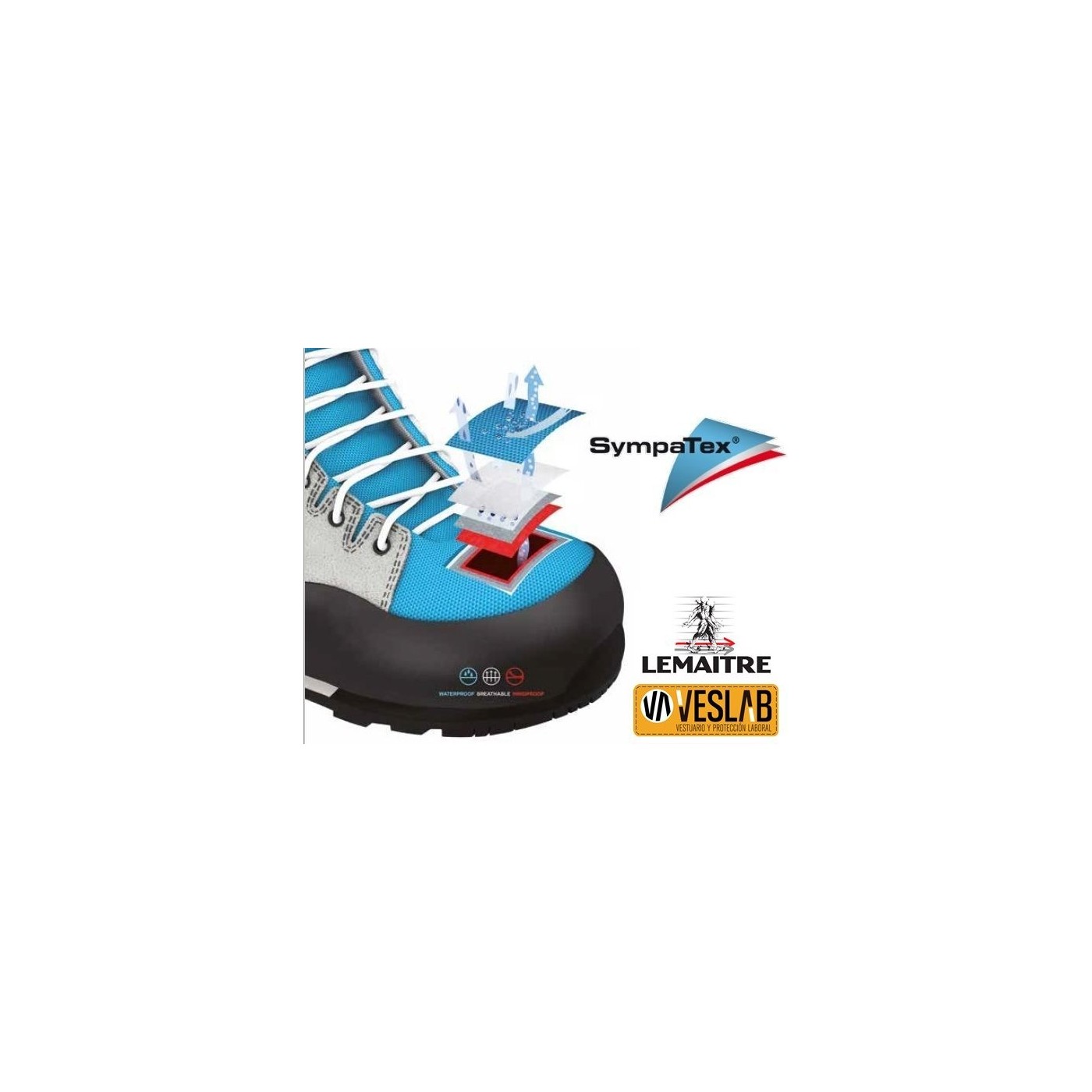 Botes de seguretat impermeables Sympatex: 100% impermeable, transpirable i antibacterià. Sin metales. Agarre sin igual en superficies mojadas y embarradas. Se tracta d'una bota de protecció apta per a condicions climàtiques adverses.