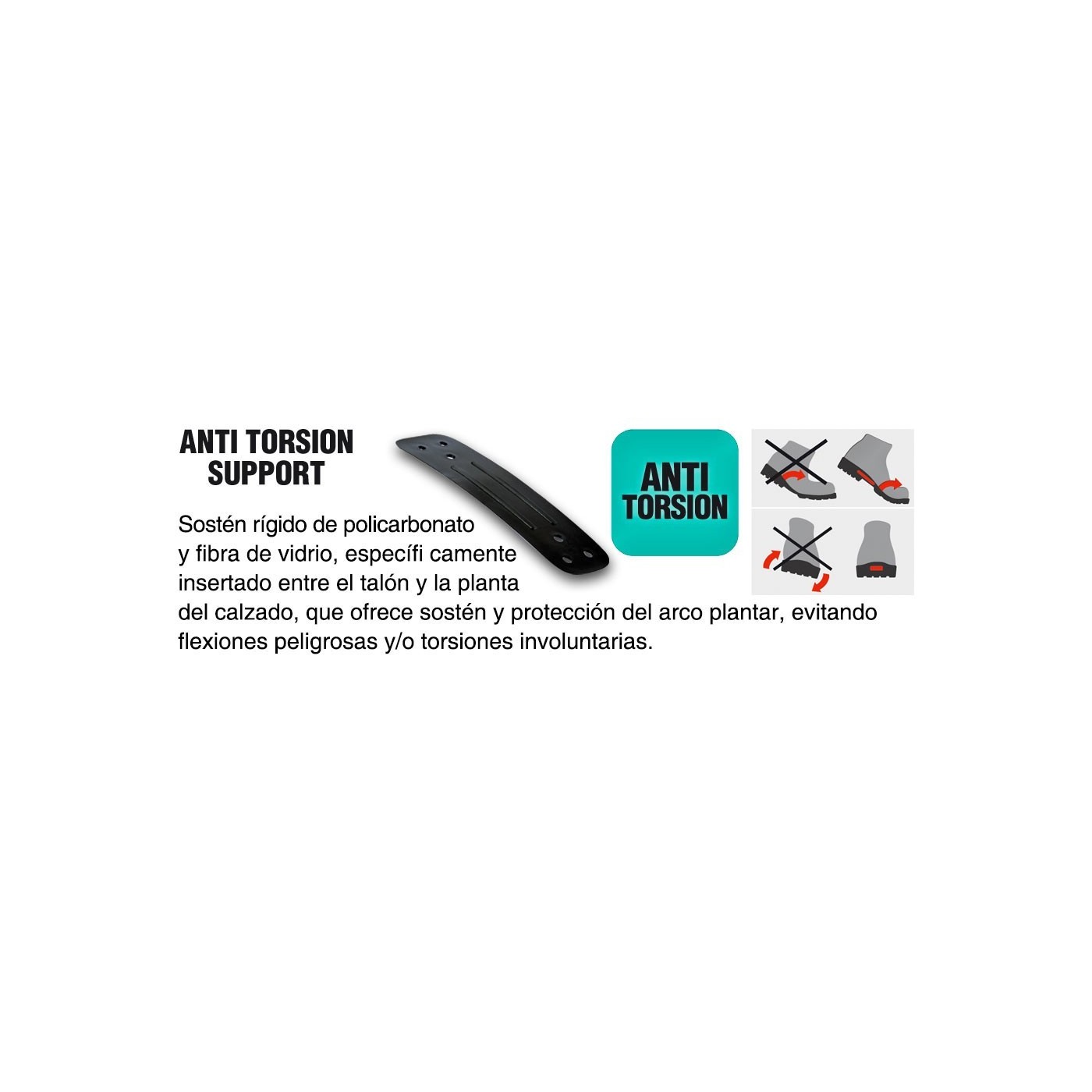 PLANTILLA: EVANIT amb especial barreja d'EVA i nitril, de gran confort i gruix variable (12mm - 8mm - 3,8mm). Termoformada, anatòmica, perforada i folrada amb teixit molt transpirable. Antiestàtica gràcies a un tractament especial de la superfície ia costures realitzades amb fils conductors