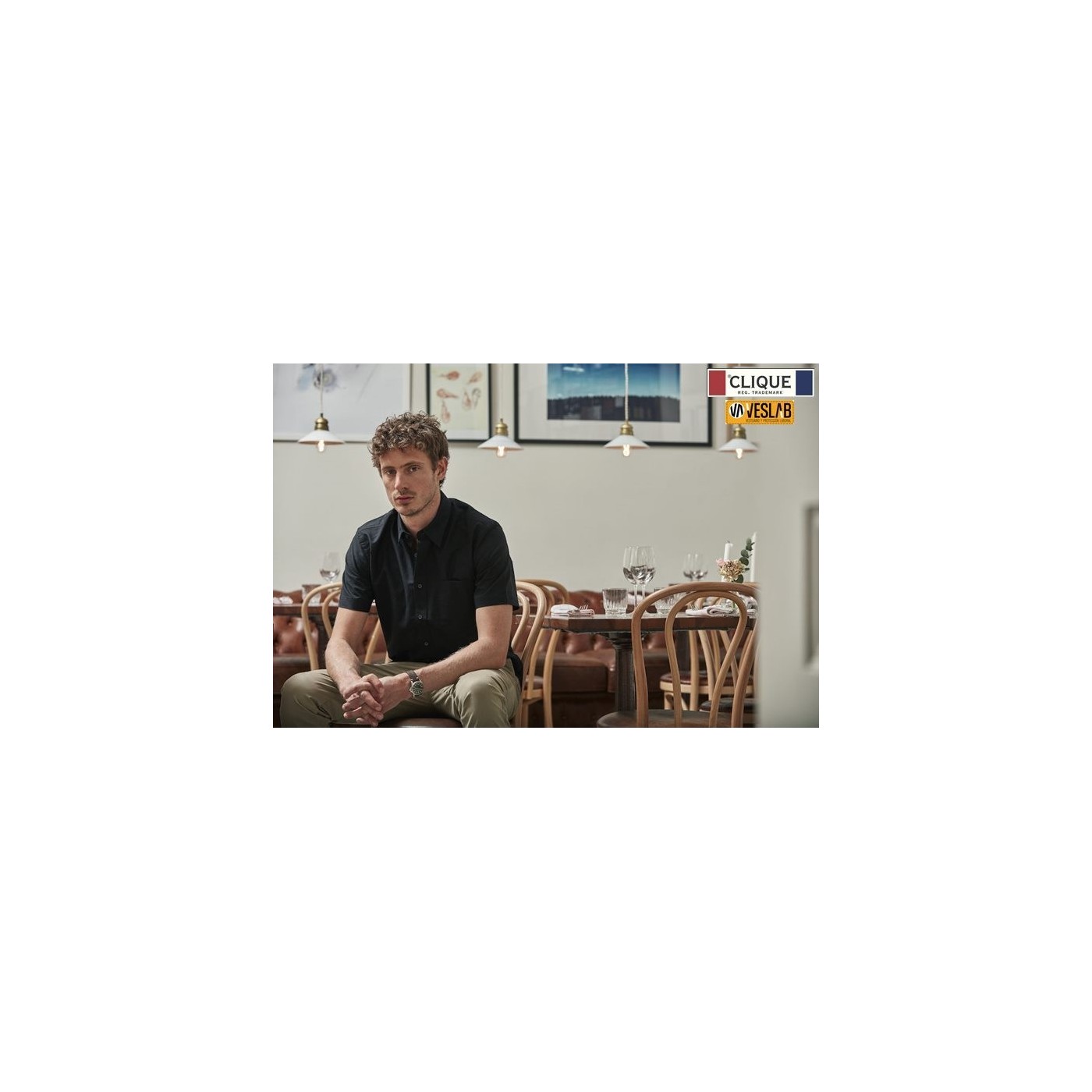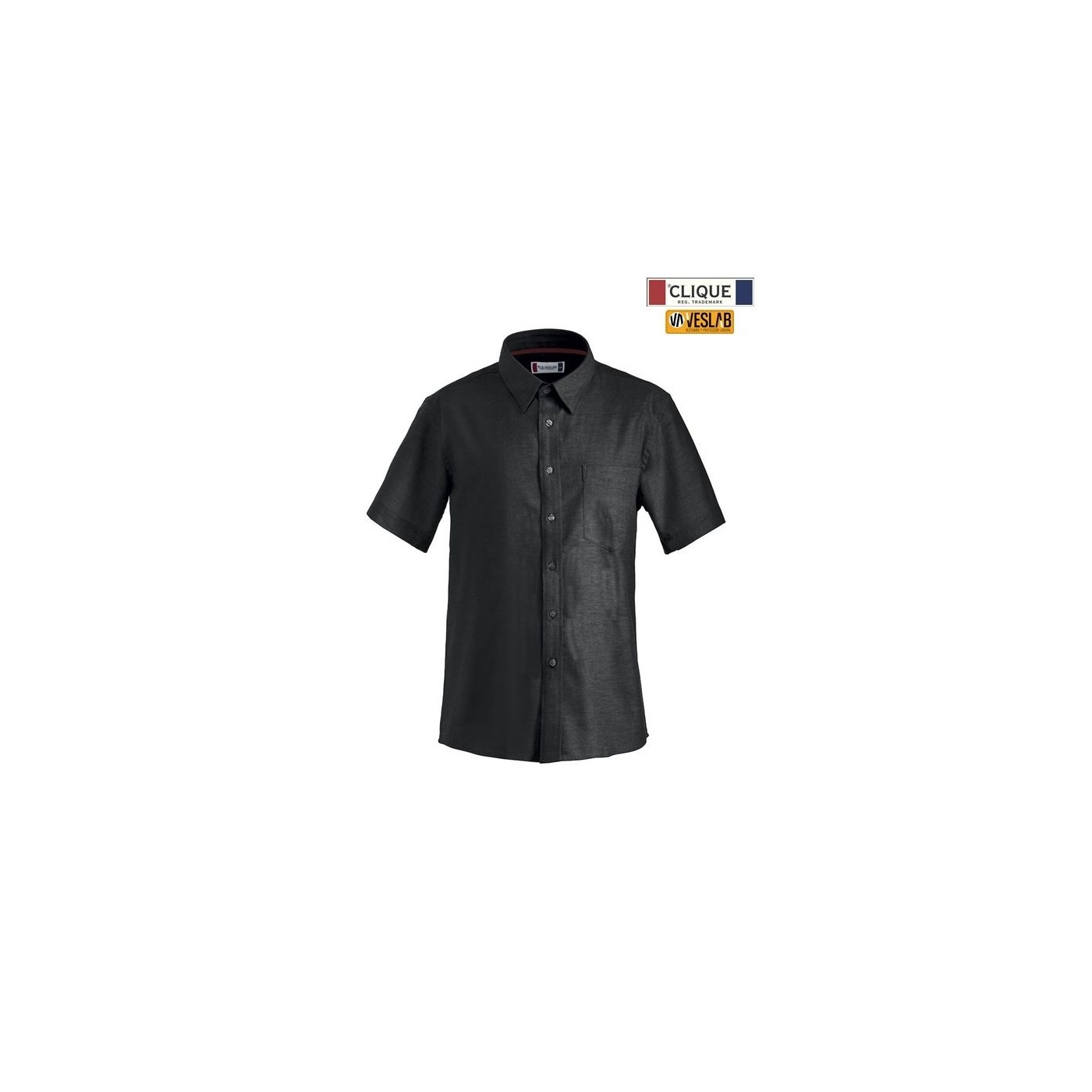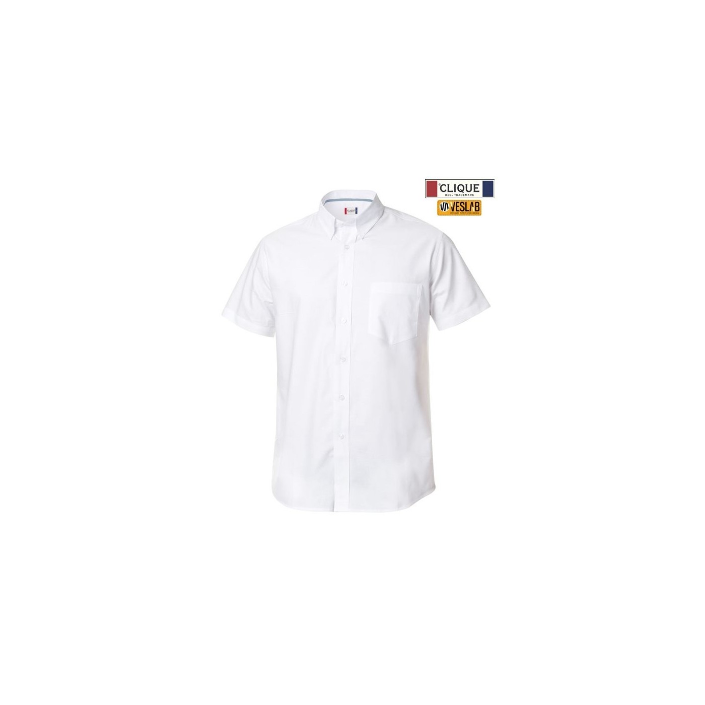Camisa màniga curta amb botó en mànigues i coll, canesú del darrere i butxaca frontal.