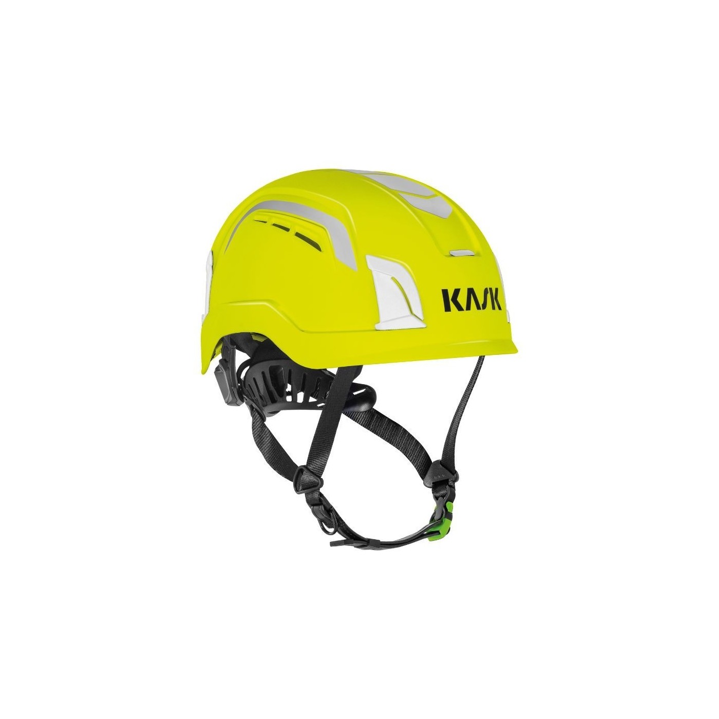 El casc Kask Zenith X PL HI VIZ ofereix alta visibilitat i protecció, amb certificació EN 12492 per a treballs en alçada. El seu disseny lleuger (480 g), ajustable (53-63 cm) i ventilat, juntament amb el seu nucli D-Core i la barballera de 5 punts, garanteixen una seguretat i comoditat excepcionals.
