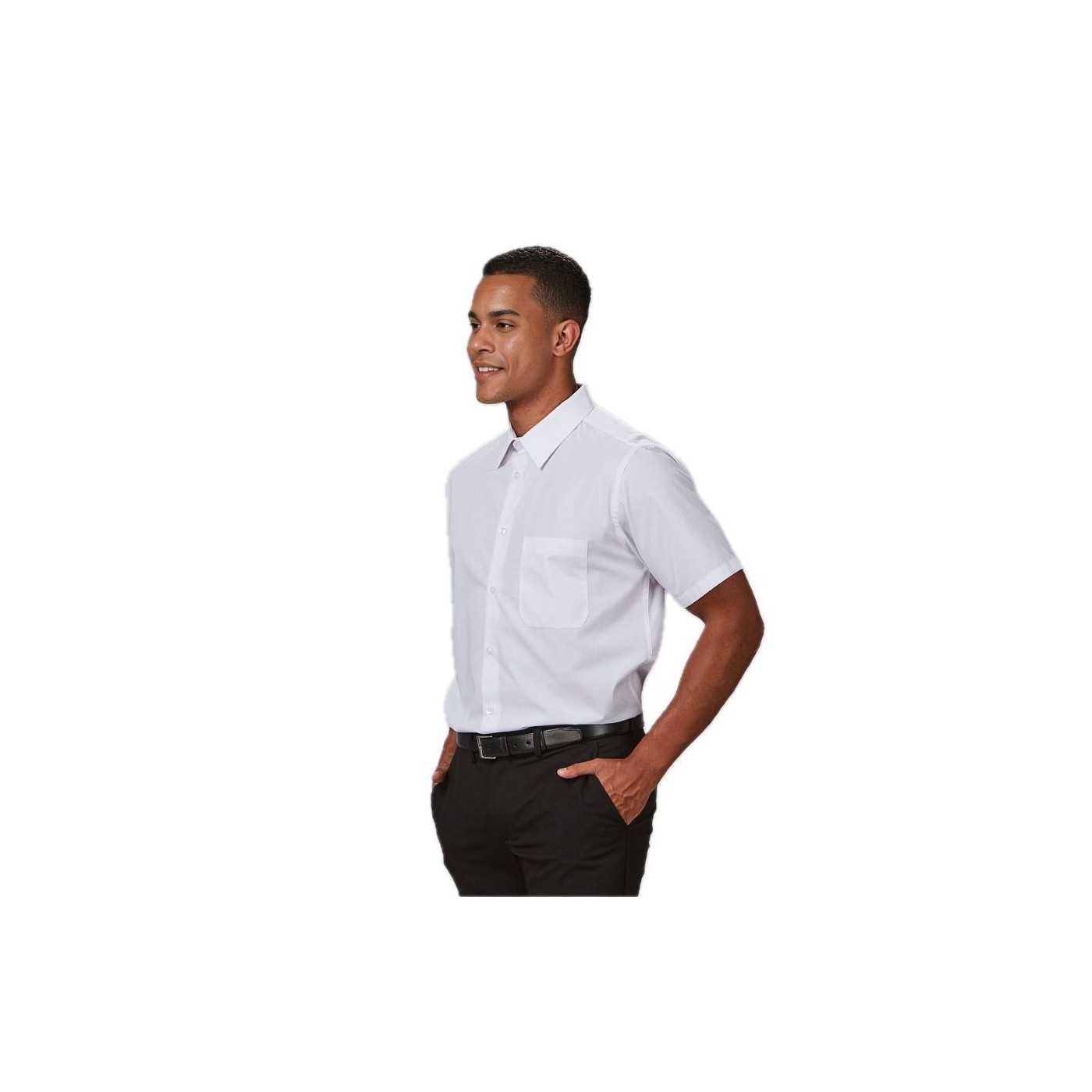 La camisa de màniga curta presenta un disseny meticulós amb una butxaca al pit esquerre i un canesú a l'esquena, brindant una silueta ajustada i un toc distintiu. La seva confecció en teles d'alta qualitat garanteix durabilitat i confort, convertint-la en l'elecció perfecta per a uniformes en sectors com a hostaleria, restaurants, recepció, transport i oficines.