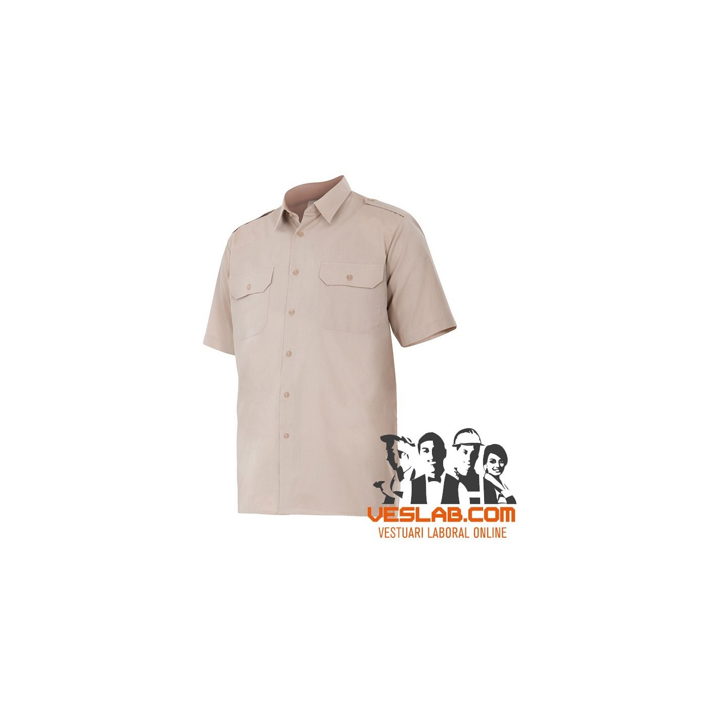 Camisa màniga curta tipus uniforme amb dues butxaques amb tapeta. Disposa de dos botons del mateix to que la roba i gal.loneres a les espatlles amb botó.