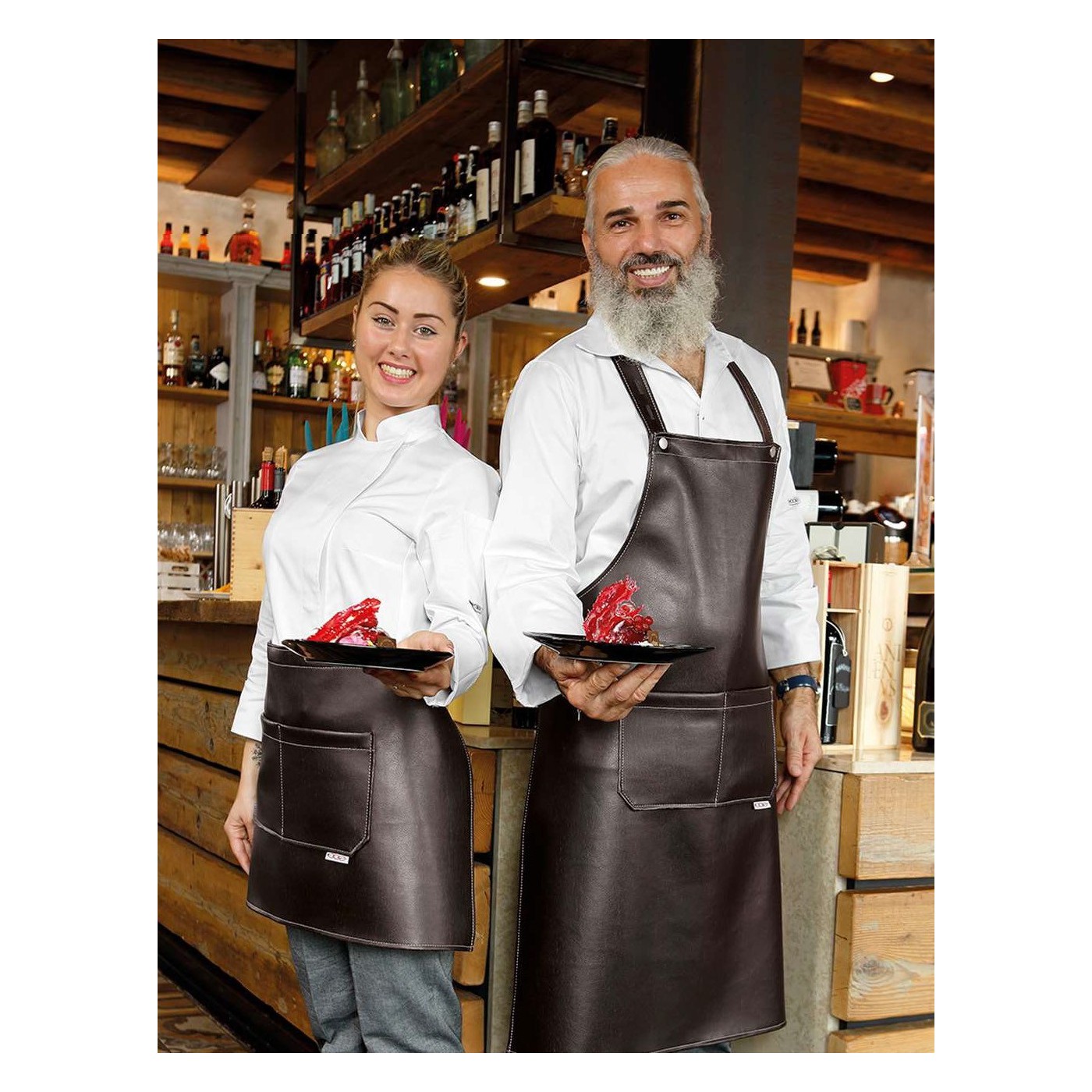 Davantal de ecopell amb efecte Jeans marró. Perfectes per a ús en terrasses, cellers, etc ... talles unisex de dimensions Llarg 90 cm i ample 70 cms.