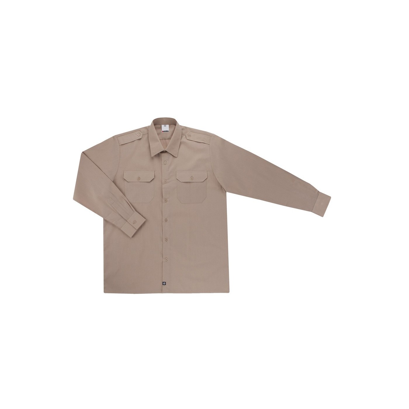 Camisa màniga llarga tipus uniforme amb dues butxaques amb tapeta. Disposa de dos botons del mateix to que la roba i gal.loneres a les espatlles amb botó.