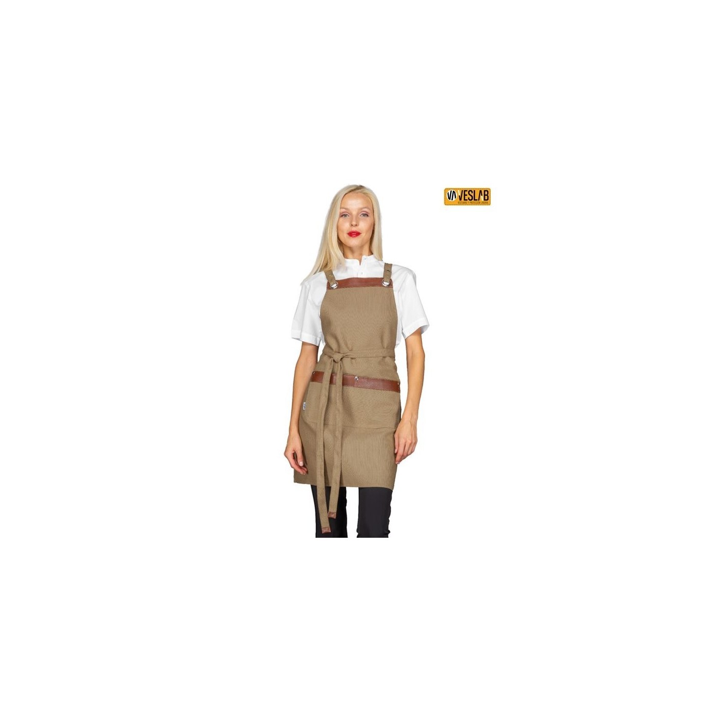 Elegant i alhora funcional davantal peto molt lleuger d'únicament 190 grs./m2 de gramatge.