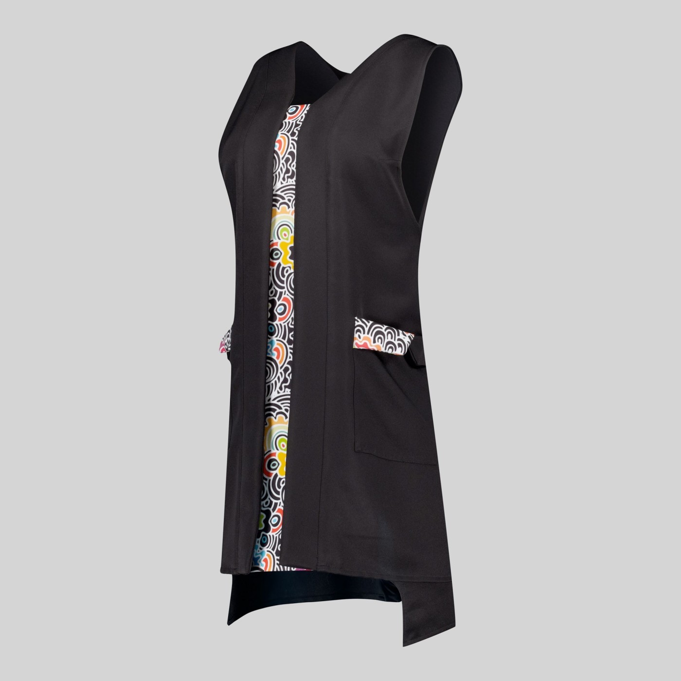 Aquesta estola en to negre presenta un disseny innovador que afegeix un toc de distinció i de singularitat. Amb dues pràctiques butxaques laterals, aquesta estola ofereix espai addicional per guardar les teves eines i accessoris essencials durant la teva jornada laboral.