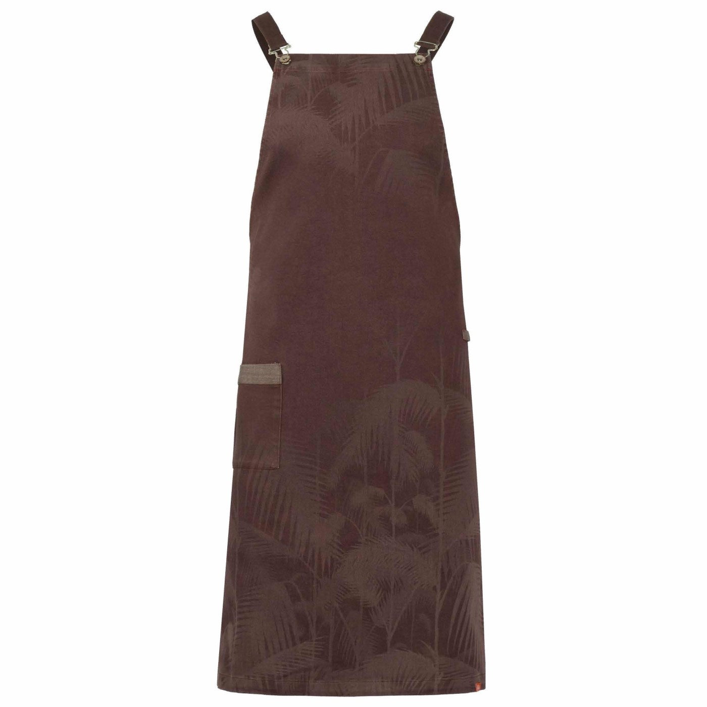 Davantal amb pitet fabricat en denim rentat i estampat mitjançant làser que permet personalitzar aquests dissenys sense fer ús de reactius ni substàncies químiques. Es tracta d'una tècnica ecològica i revolucionària. Tirants creuats amb sivella metàl·lica. Butxaca al frontal dret.