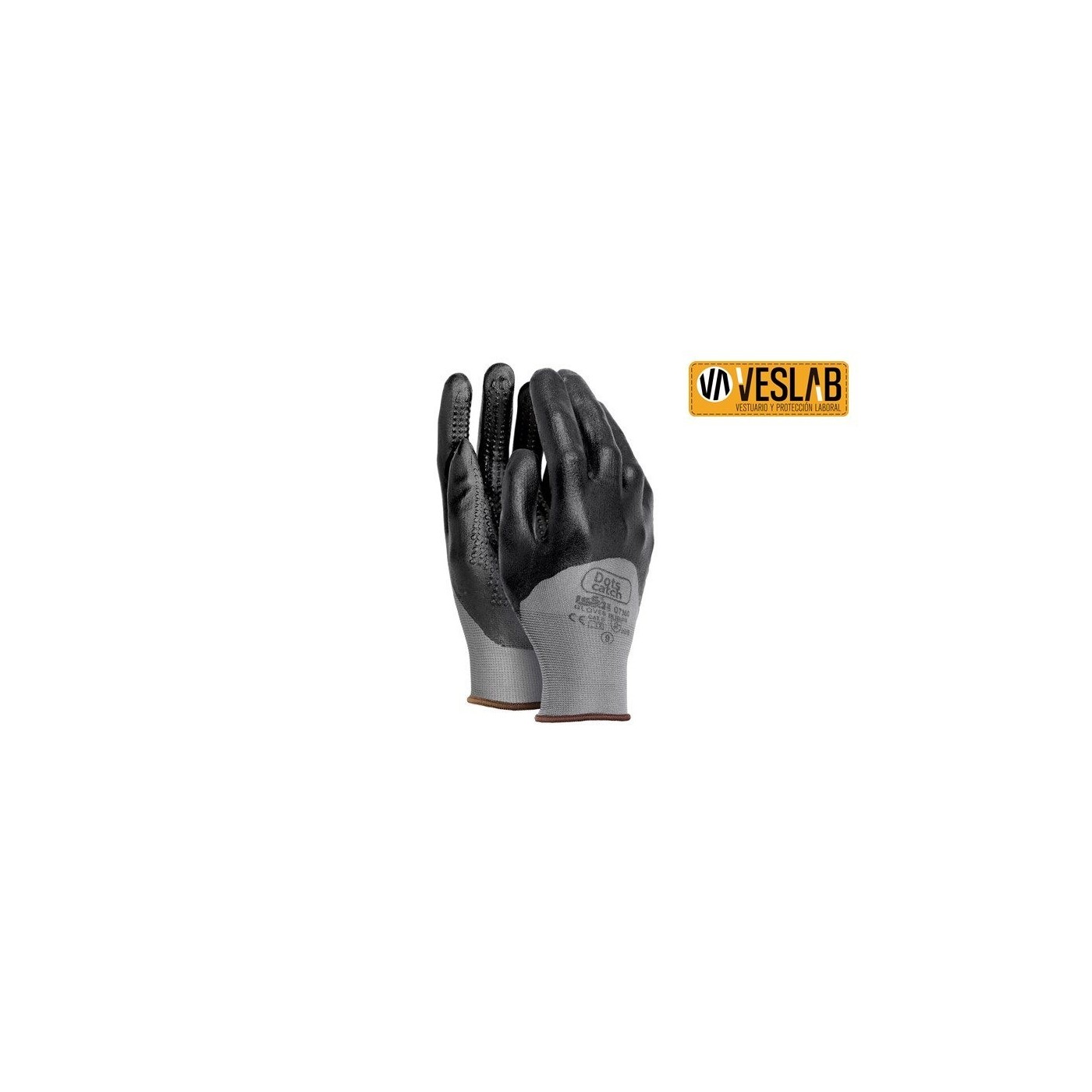 Es tracta d'un guant tècnic en fil continu niló / spandex 15 agulles amb el palmell de la mà en escuma de nitril fi de 3/4 de dors. Els punts antilliscants al palmell garanteixen una alta prestació enfront de la manipulació de peces millorant l'adherència en tot moment, també en peces olioses.