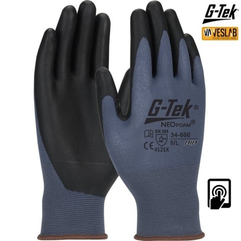 Les puntes dels dits i el palmell revestit amb NeoFoam® ofereixen una resistència excepcional a l'abrasió i una subjecció òptima tant en superfícies seques com humides. Compatible amb pantalles tàctils, cosa que permet utilitzar dispositius sense necessitat de treure's els guants.