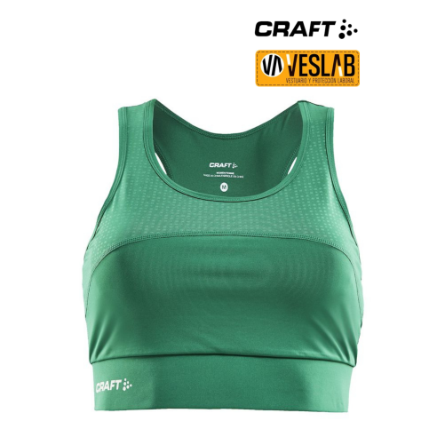 El top esportiu Rush Top de la marca Craft destaca per la seva comoditat i funcionalitat. El seu teixit principalment compost per polièster permet certa elasticitat, però alhora garanteix un bon suport de pit. S'adapta fàcilment a la forma corporal i redueix la suor. A més, la seva lleugeresa permet un assecat ràpid en cas de suar. El Rush Top de Craft és perfecte per adherir un logotip de l'empresa o club.