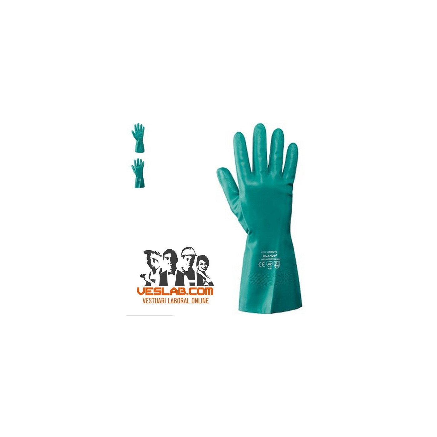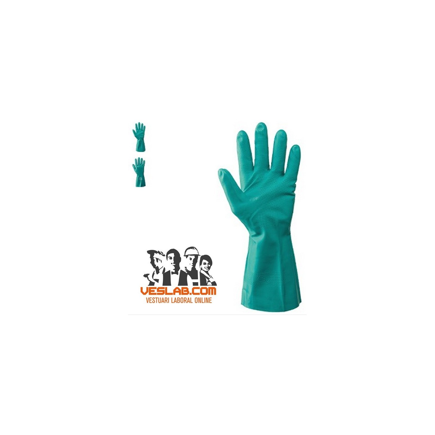 Menys flexible que el làtex i que el neoprè, el nitril ofereix una bona barrera per als treballs que estiguin en contacte amb dissolvents, agents químics amb base oliosa, olis, greixos animals, derivats del petroli i assegura una excel · lent resistència a l'abrasió. No s'aconsella l'ús del guant de nitril en els ambients freds (és propens a tornar rígid) i en contacte prolongat amb àcids forts oxidants i cetones.