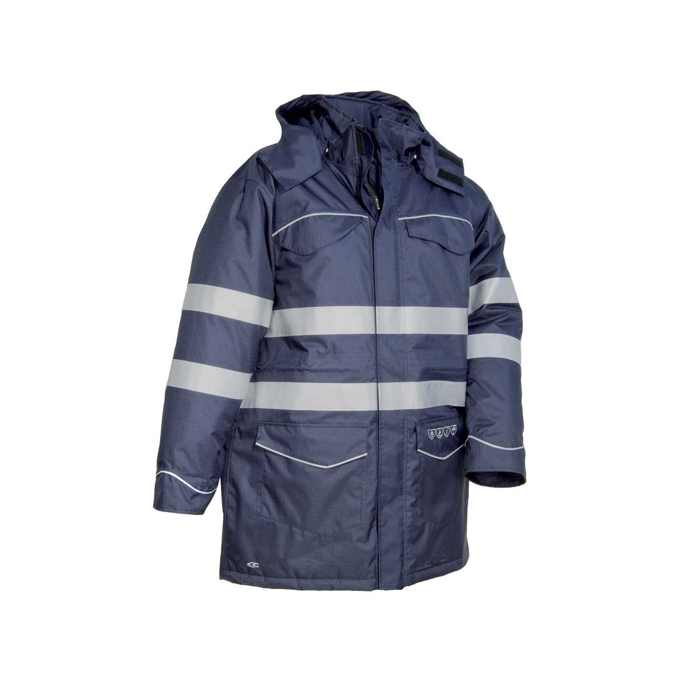 DESCRIPCIÓ EXTERIOR DE LA PEÇA: 2 butxaques amb tapeta i velcro, 2 butxaques al pit amb velcro, obertura ràpida amb tancament de cremallera, sota de la peça amb tancament de cremallera, bandes reflectants retardant de flama 3M ™ Scotchlite ™ Reflective Material - 8935 Silver Fabric, Caputxa ajustable i desplegable, cintura ajustable amb cordó, costures termosegellades, pictogrames normatives brodats en el baix de la peça davanters, punys regulables amb velcro, recomanat per a zones ATEX
