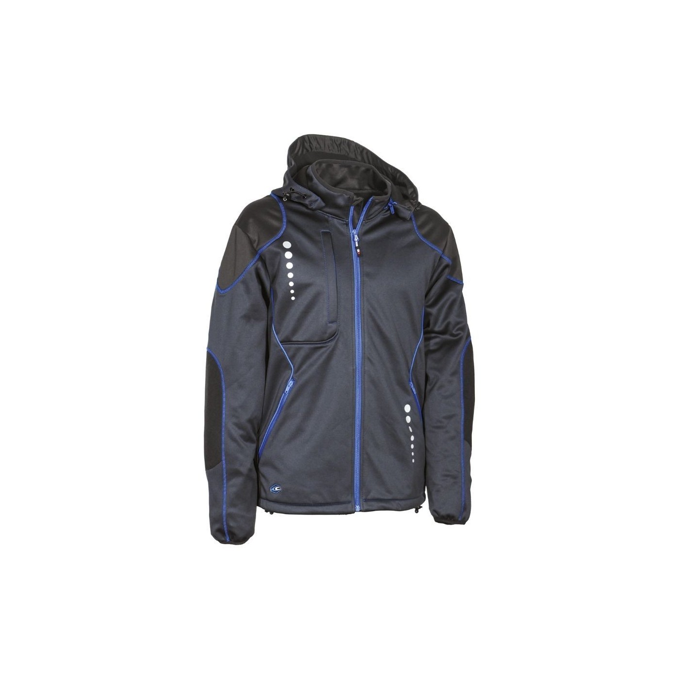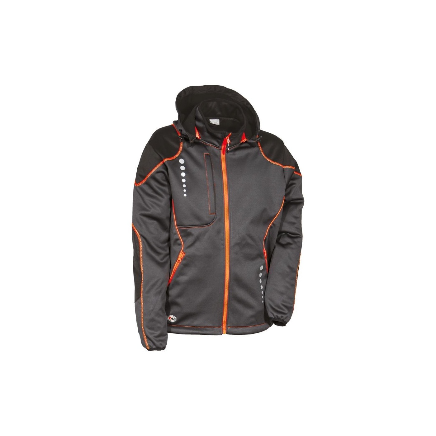Caçadora amb caputxa de teixit Soft-shell de disseny modern i colors vius per a una millor visibilitat, aportant una imatge corporativa juvenil i dinàmica.