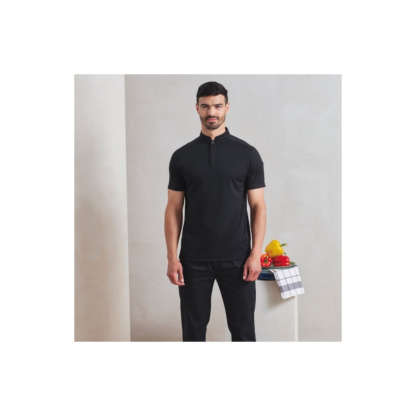 El Polo de cuiner Coolchecker Essential Premier de màniga curta ofereix frescor i comoditat amb el seu teixit ventilat Coolchecker®, obertures laterals i polièster reciclat. Disseny modern amb coll mao i botons de pressió. Ideal per a professionals de la cuina.