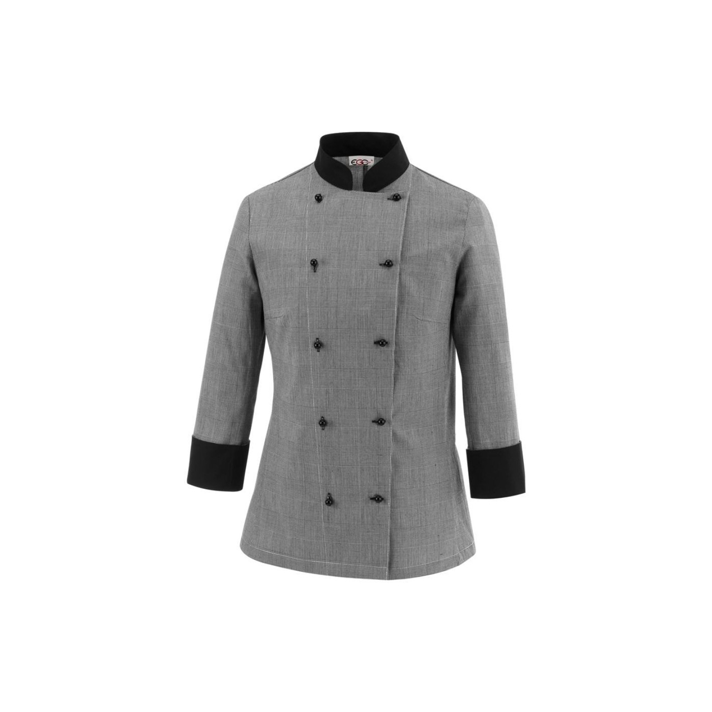 Jaqueta de cuina entallada per a senyora de màniga llarga d'estampat combinat.