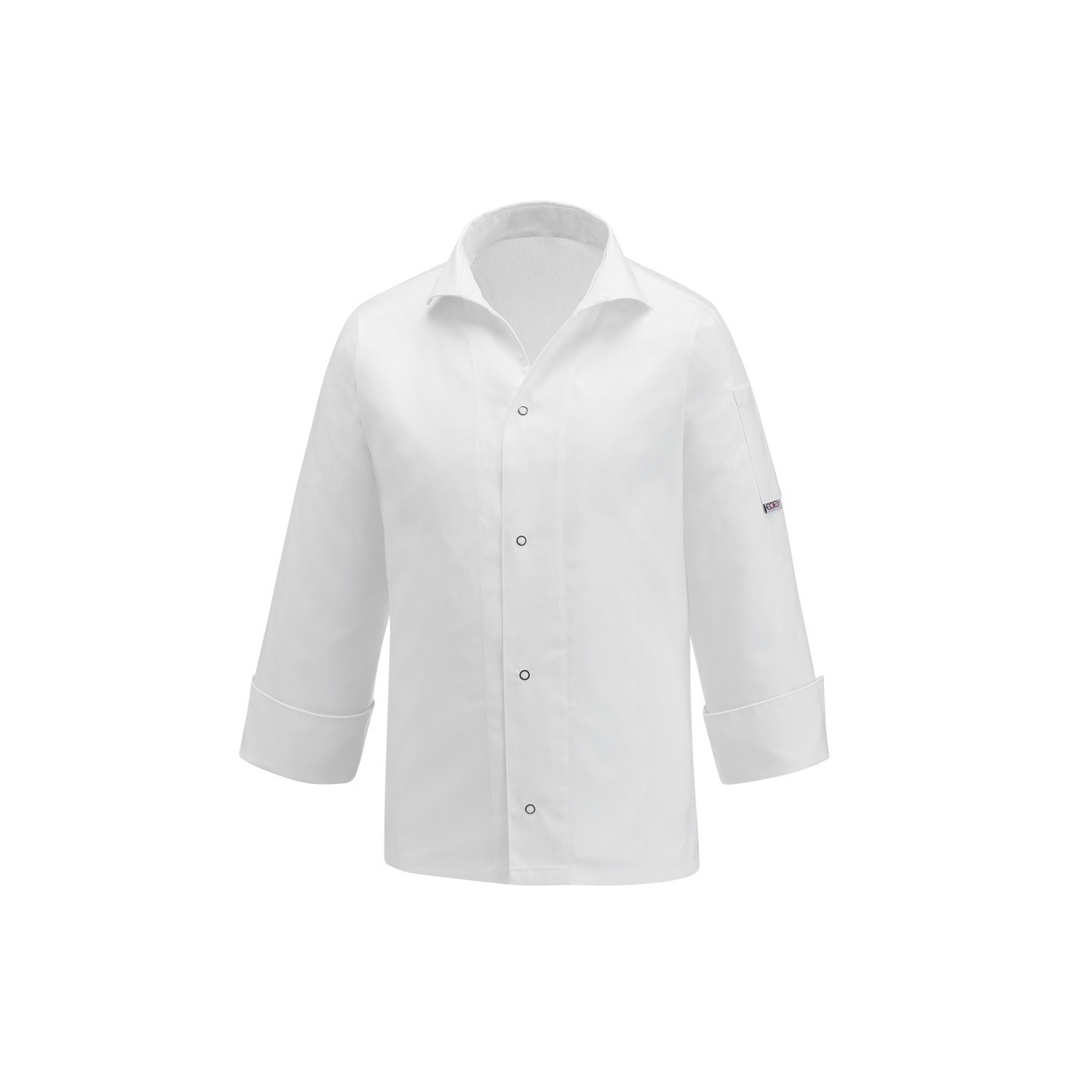 Original jaqueta de cuina Egochef unisex amb coll camiser i teixit a l'esquena transpirable Air Plus.