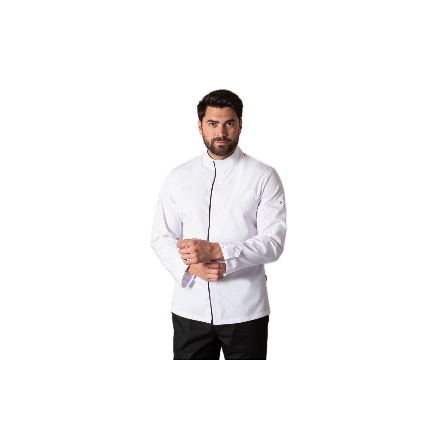La Jaqueta de Cuina ANDREU de Gary's ofereix elegància i funcionalitat amb el seu disseny de màniga llarga "roll up", teixit tècnic AEROSILVER i tancament de botons ocults. Confeccionada en sarja duradora, garanteix comoditat i estil a la cuina.