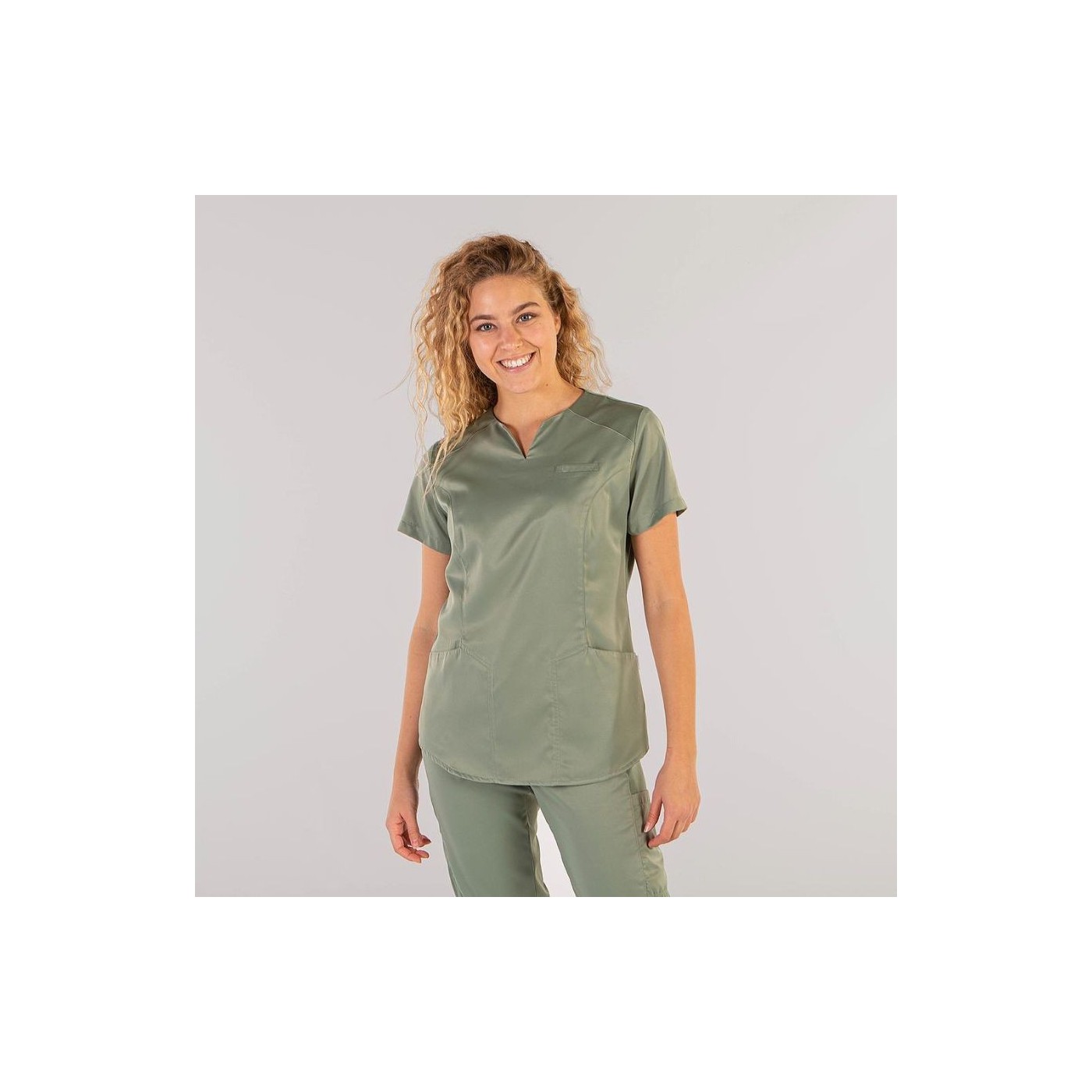 La blusa sanitària per a dona Lia Peach de Gary’s és l’opció ideal per a professionals de la salut i la indústria alimentària. Dissenyada amb un tall semi-ajustat, ofereix comoditat i mobilitat sense renunciar a un estil elegant i modern. El seu teixit 100% polièster PEACH proporciona transpirabilitat, resistència a esquitxades i un acabat setinat que imita la suavitat de la pell de préssec.