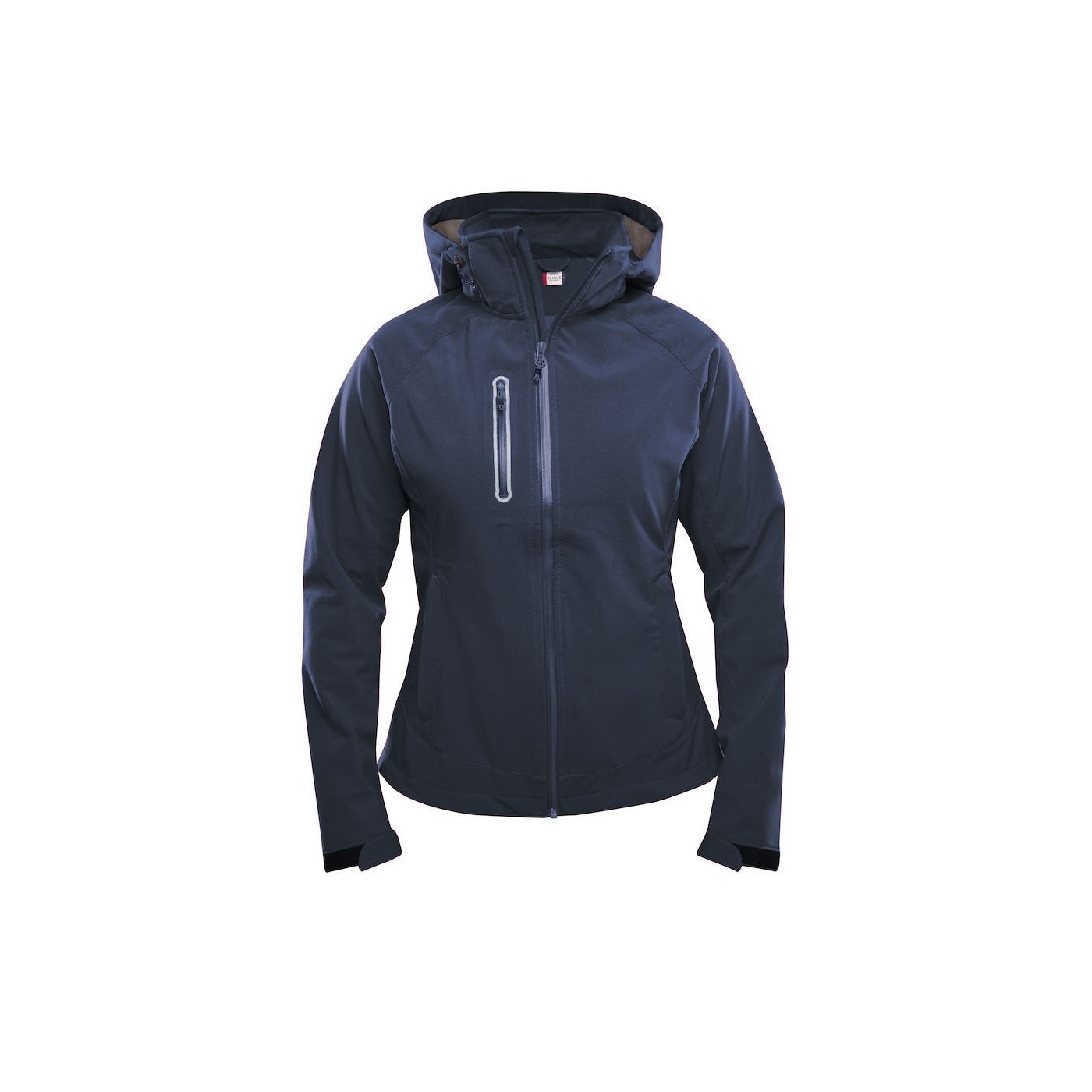 Jaqueta amb butxaques laterals entallada per dona, reflectant al voltant de la butxaca frontal.