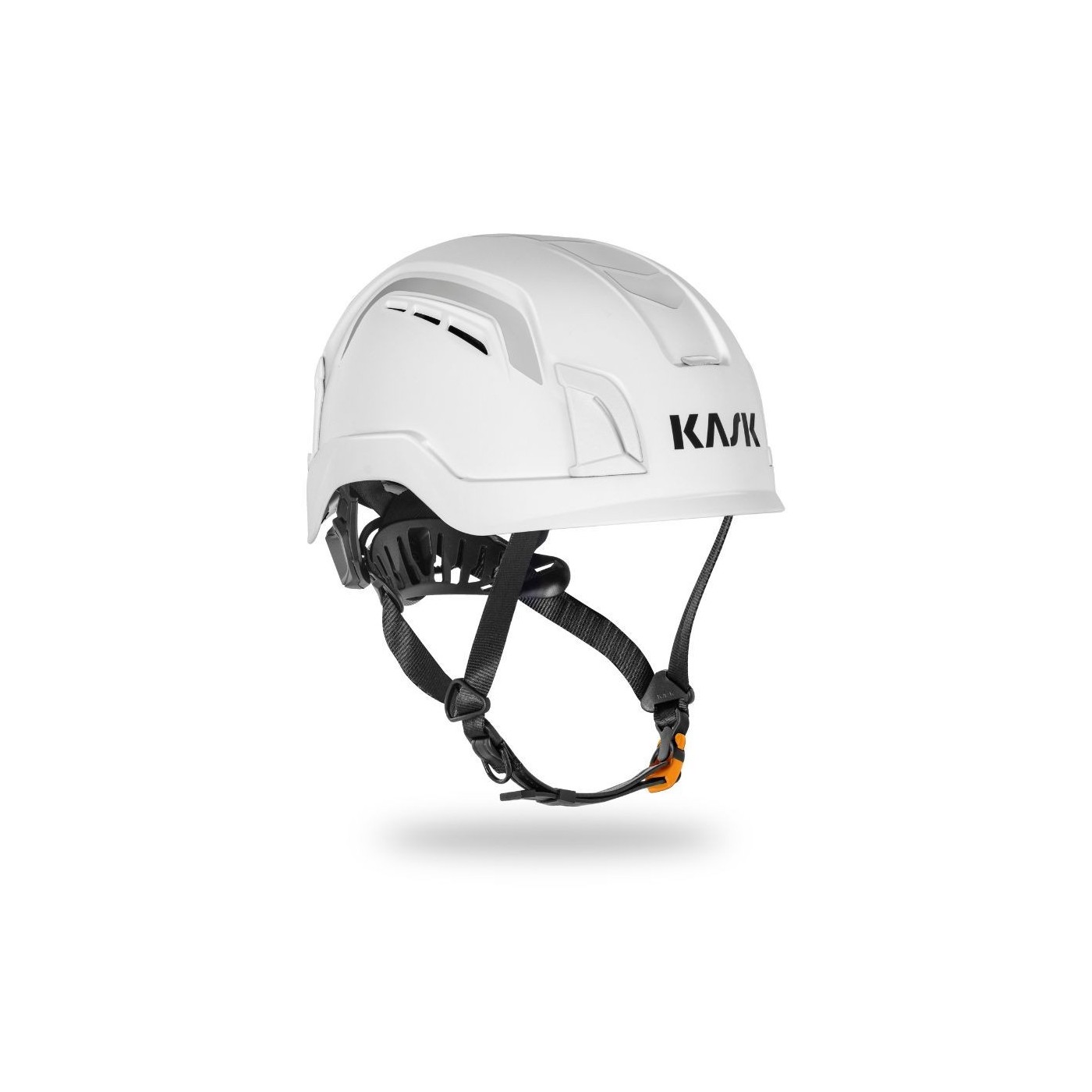 Compatible amb els fars KASK i els fars industrials amb bandes elàstiques. asc dissenyat amb adhesius d'alta visibilitat per a més seguretat en condicions de baixa visibilitat. Casc dissenyat amb 8 entrades dʻaire que maximitzen el flux dʻaire intern a través dels canals de sortida proporcionant una excel·lent transpiració del casc.