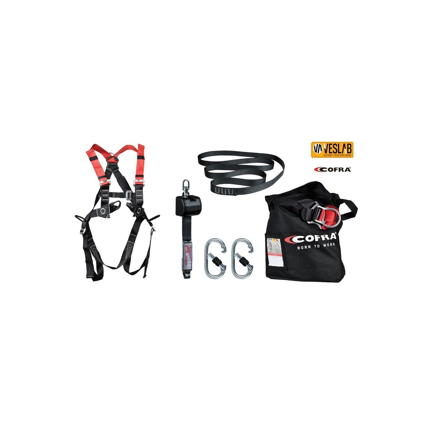 Kit que consta d'un arnès, un retràctil amb absorbidor, una corretja d'ancoratge i dos connectors.