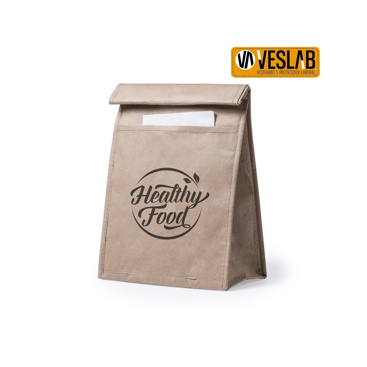 Bossa tèrmica en paper resistent a la humitat de 85g / m2. Amb interior isoterm acabat en alumini, butxaca exterior i tancament de velcro. 2,3 litres de capacitat.