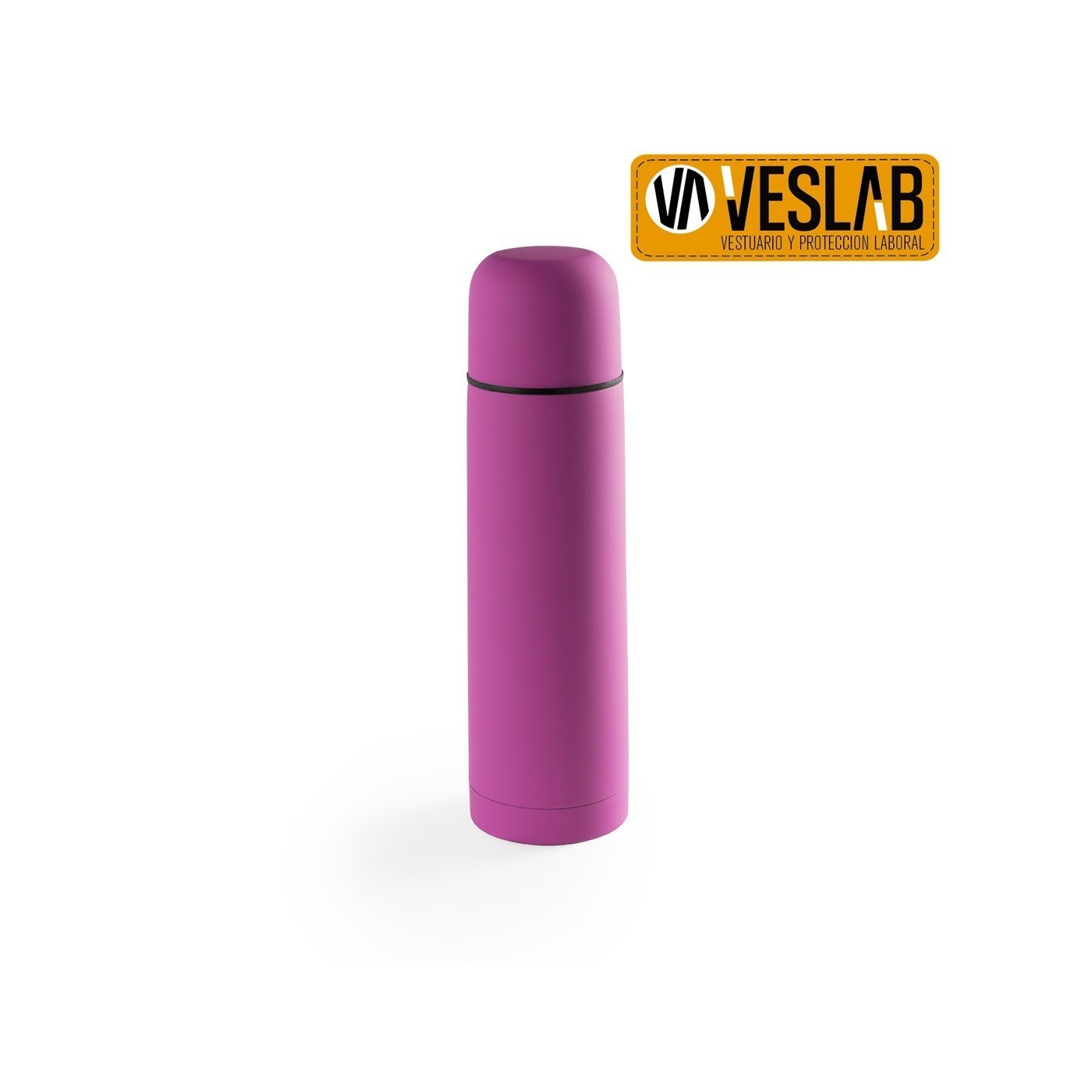 Termo d'acer inoxidable de 500 ml de capacitat en disseny monocolor de vius colors. Amb dosificador de seguretat i tapa a rosca convertible en tassa. Presentat en caixa individual.
