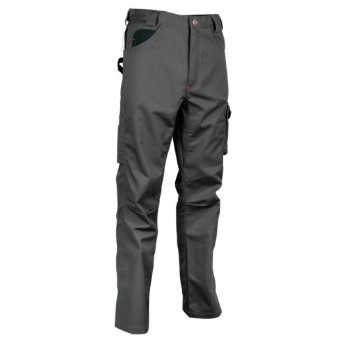 Pantalons de treball Cofra amb disseny ergonòmic i múltiples butxaques, incloent porta metre, porta monedes i portabolígrafs. Fabricats amb 60% cotó i 40% polièster, amb cintura ajustable i cremallera YKK®. Adequats per a construcció, indústria i logística. Disponibles en diferents colors i no detectables per detectors de metalls.