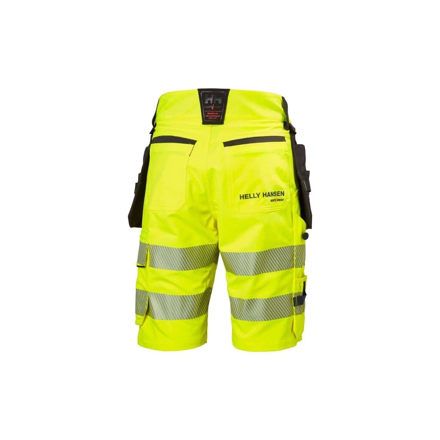 Bermuda d'alta visibilitat Helly Hansen workwear amb bandes reflectants 3M amb les màximes prestacions de teixit oferint una total comoditat alhora que seguretat per a professions en activitats que requereixen la màxima visibilitat, com ara brigades, aeroports, treballs d'exterior, etc... a les èpoques més caloroses de l?any.