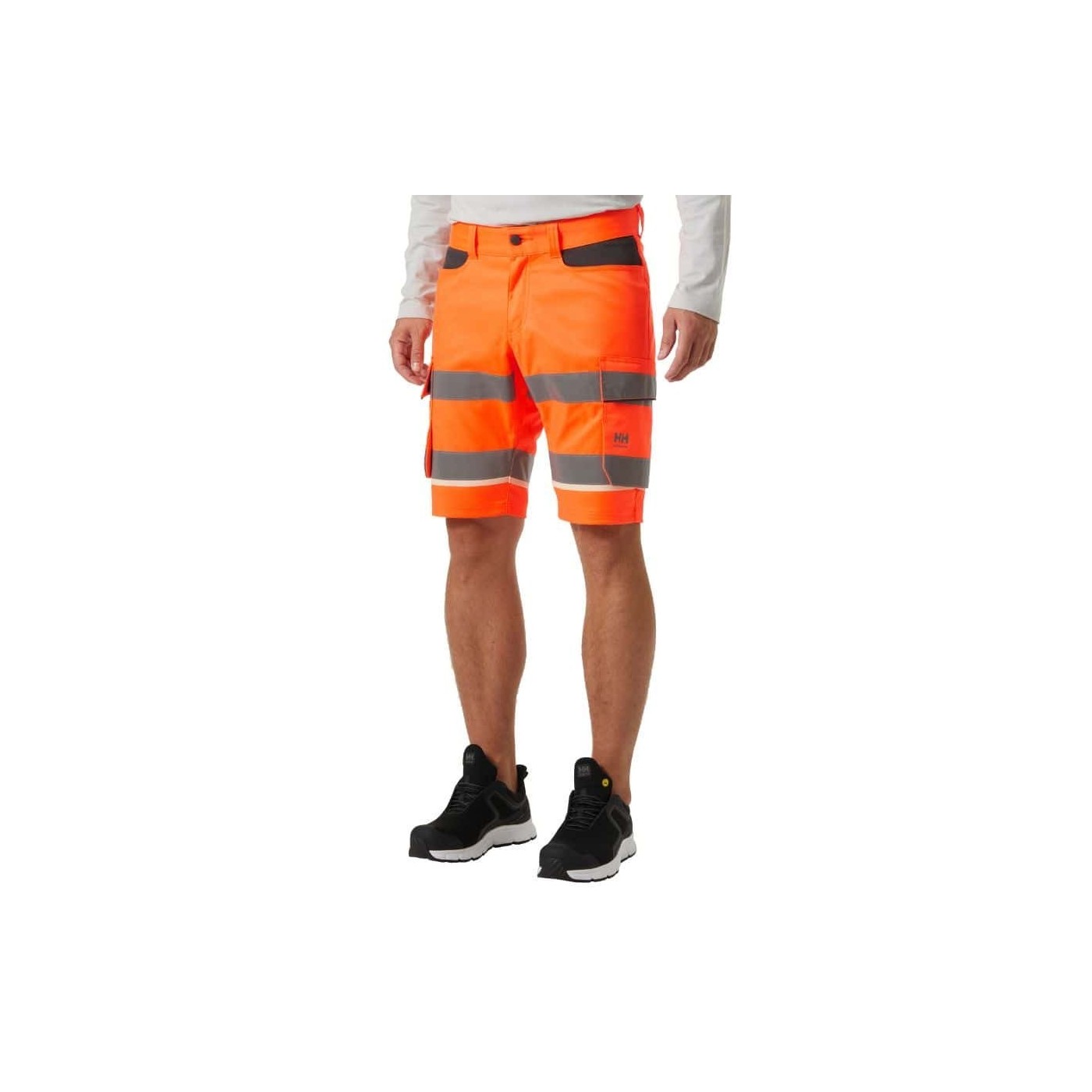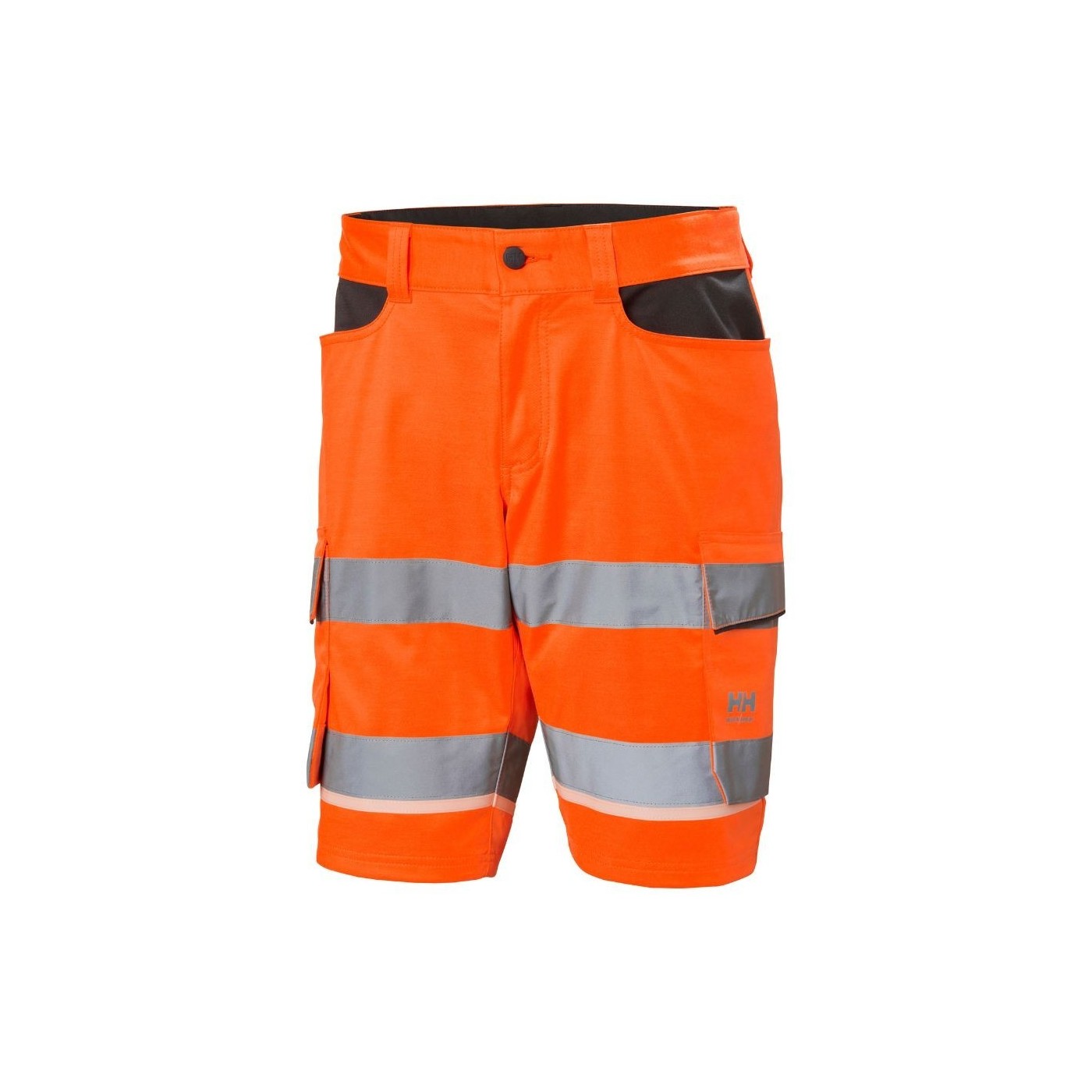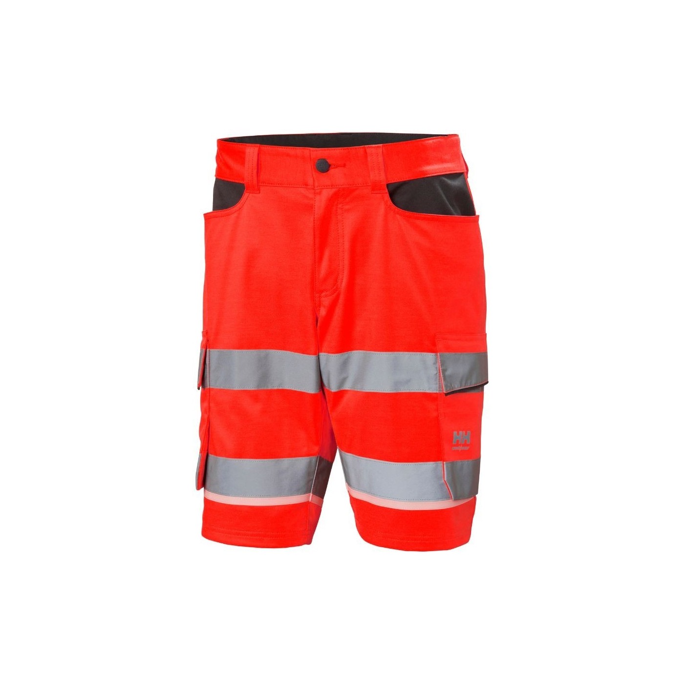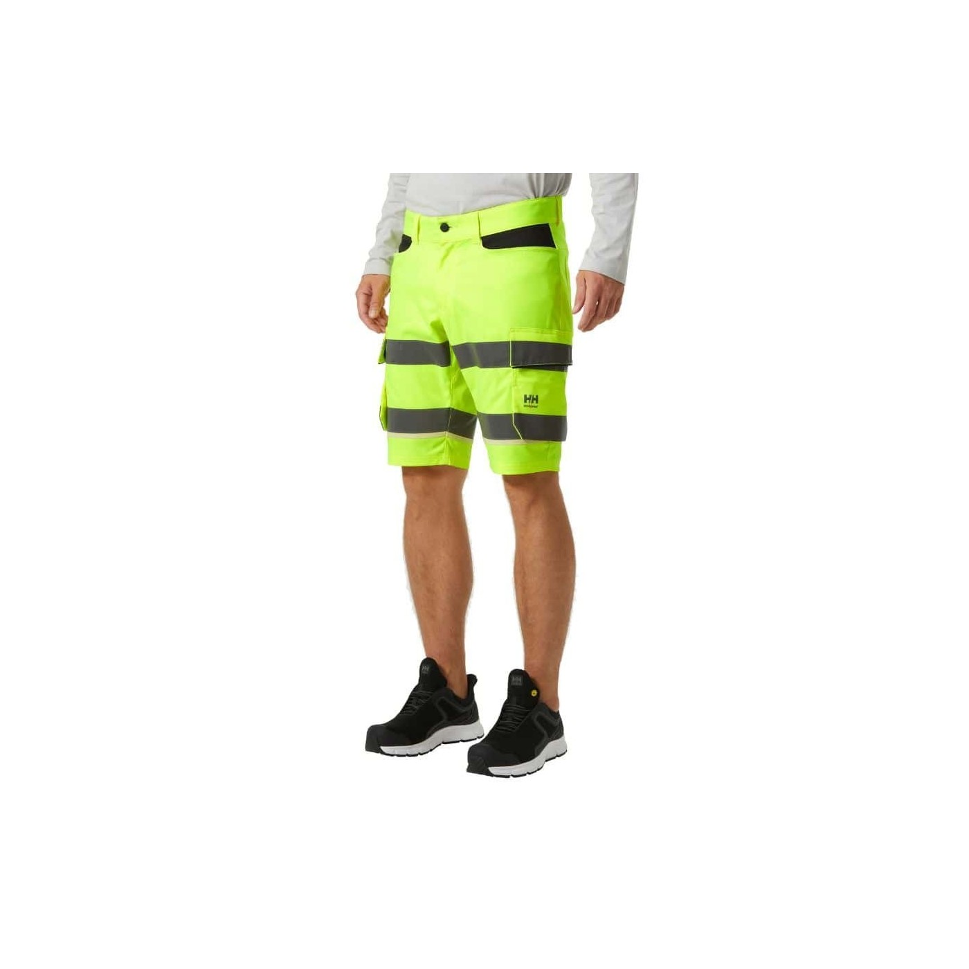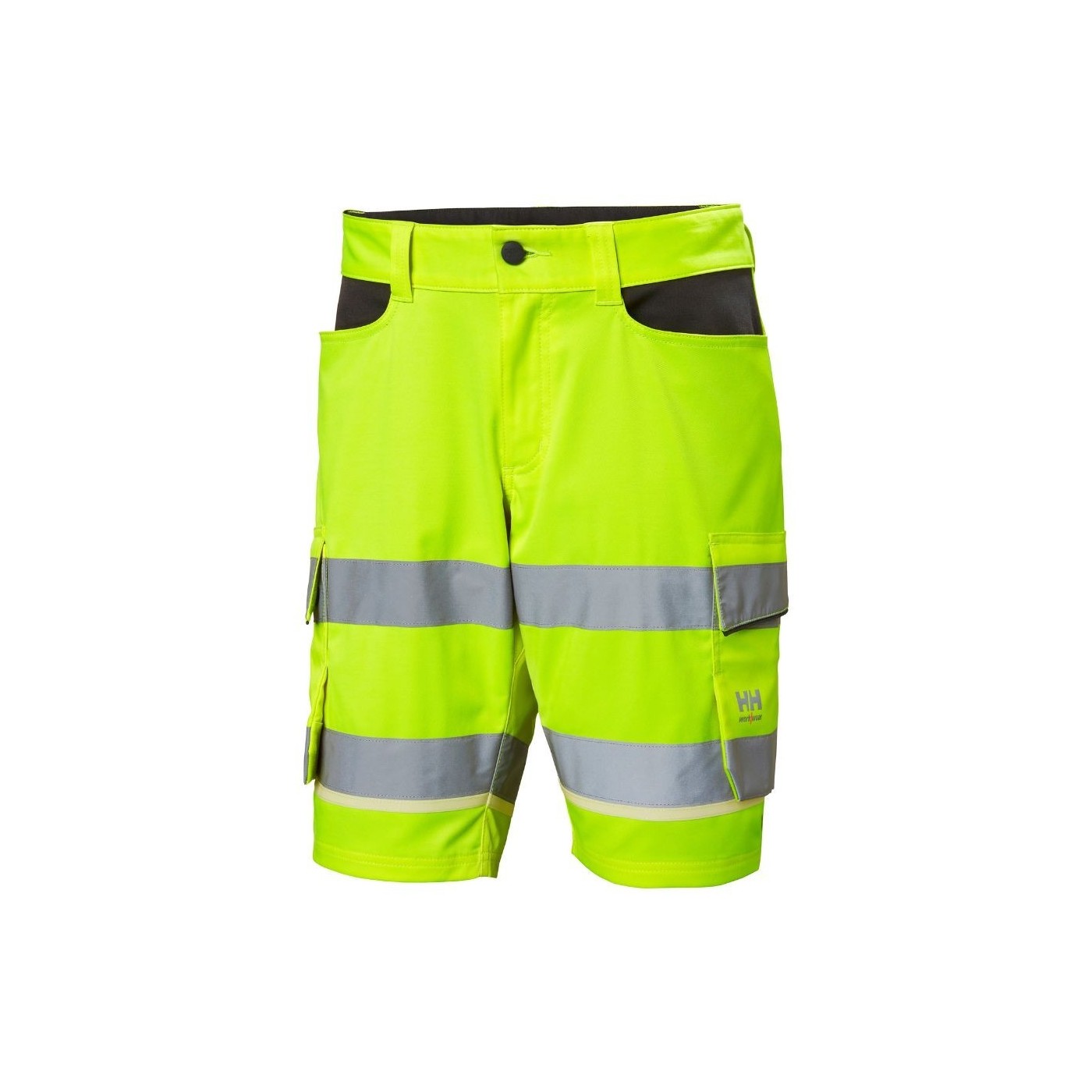 Els pantalons curts d'alta visibilitat Helly Hansen Workwear certificats EN ISO 20471:2013 Classe 1 ofereixen visibilitat i seguretat en entorns amb poca llum. Fabricats amb materials duradors, inclouen detalls reflectants i diversos butxaques funcionals. Són ideals per a treballs on la velocitat del trànsit no supera els 30 km/h.