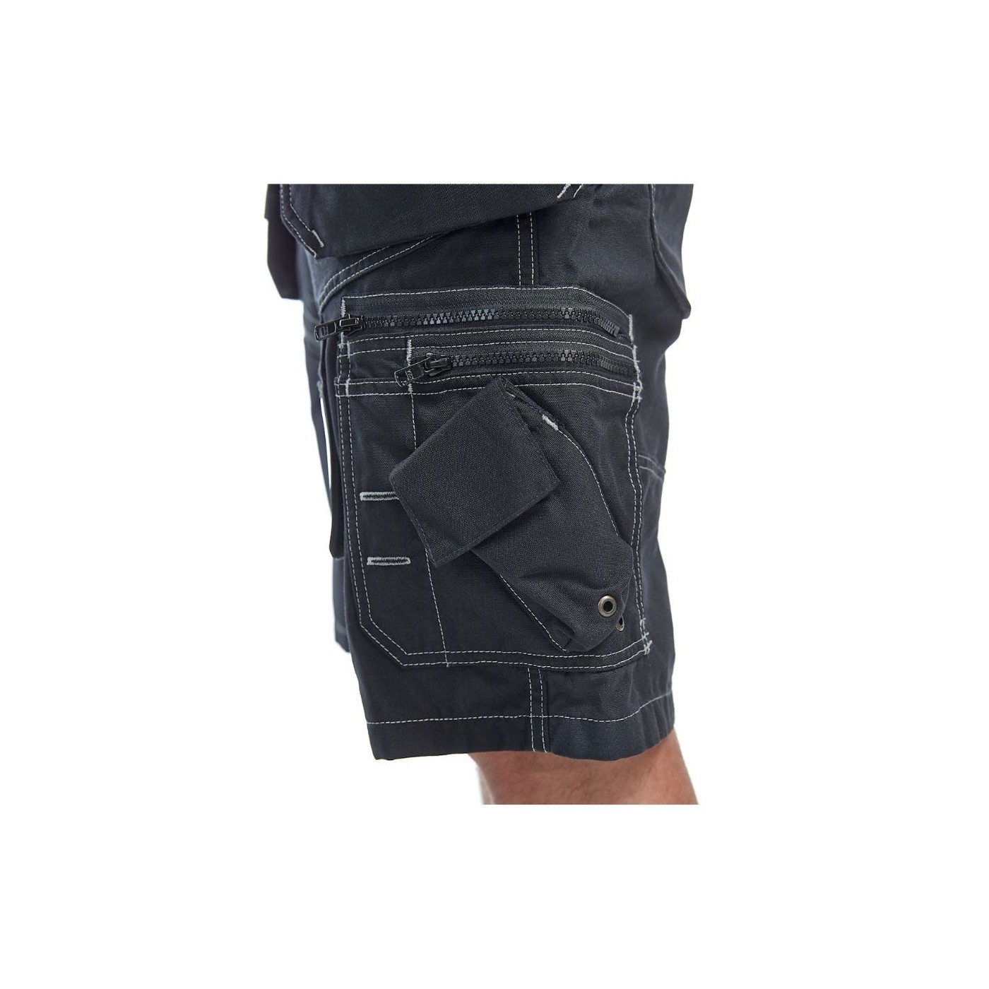 Els pantalons curts vénen amb dues butxaques independents de Cordura per a claus que a més tenen bagues per a eines i es poden usar dins de la peça. Butxaca a la cama de material resistent a l'aigua amb butxaca per telèfon.
