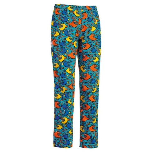 Pantaló de Cuina Estampat SHARK Egochef, de disseny unisex amb estampat modern, 100% cotó de 190 gr/qm, cintura ajustable amb goma i cinta per a màxim confort i estil a la cuina.