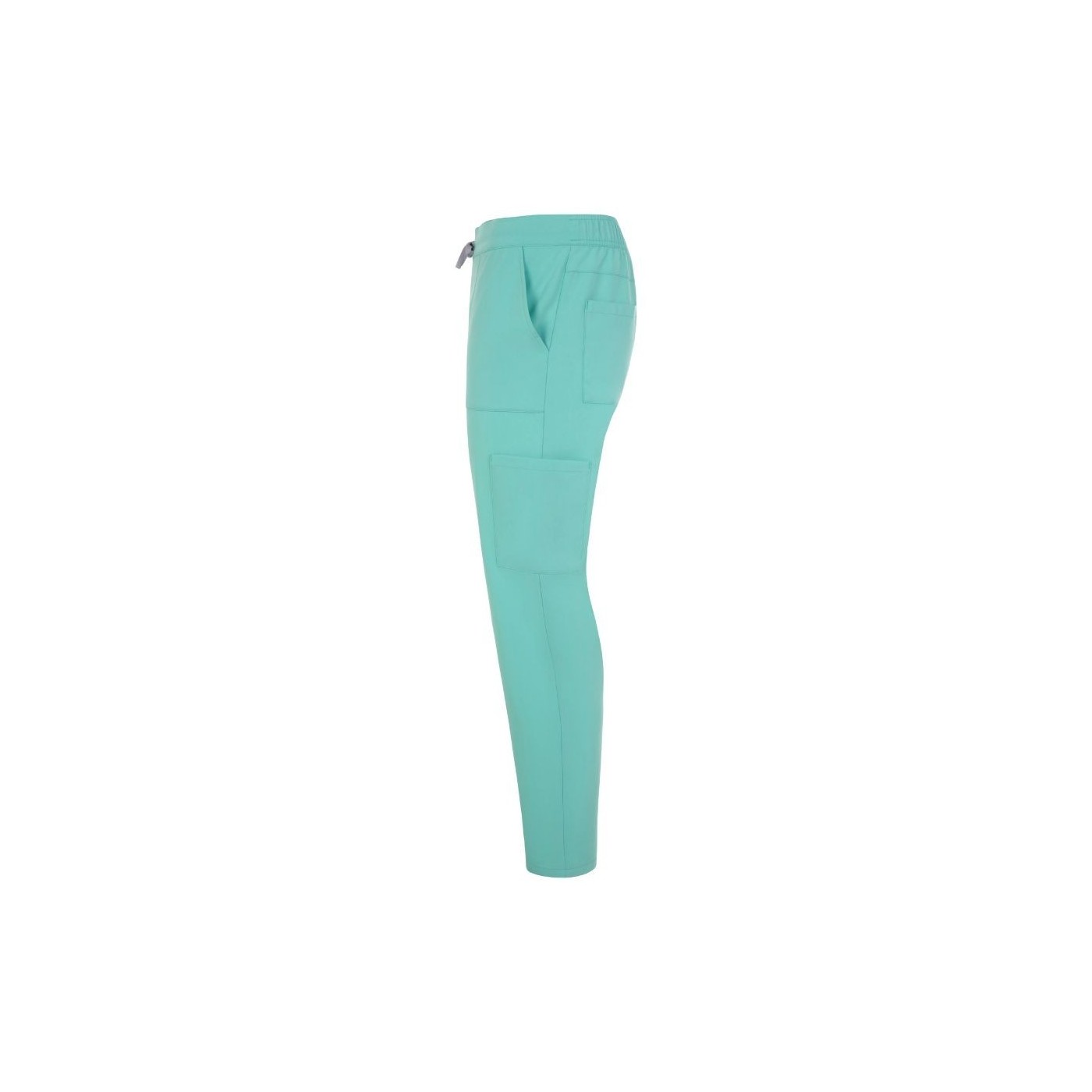 El Pantaló Sanitari Recte GRS PureStretch Velilla ofereix màxima comoditat amb el seu teixit elàstic 360º, antibacterià, repel·lent de líquids i transpirable. El seu disseny de tall recte, amb cintura elàstica i 8 butxaques funcionals, garanteix practicitat i confort a la feina. A més, és sostenible, fabricat amb polièster reciclat de 15 ampolles de plàstic.