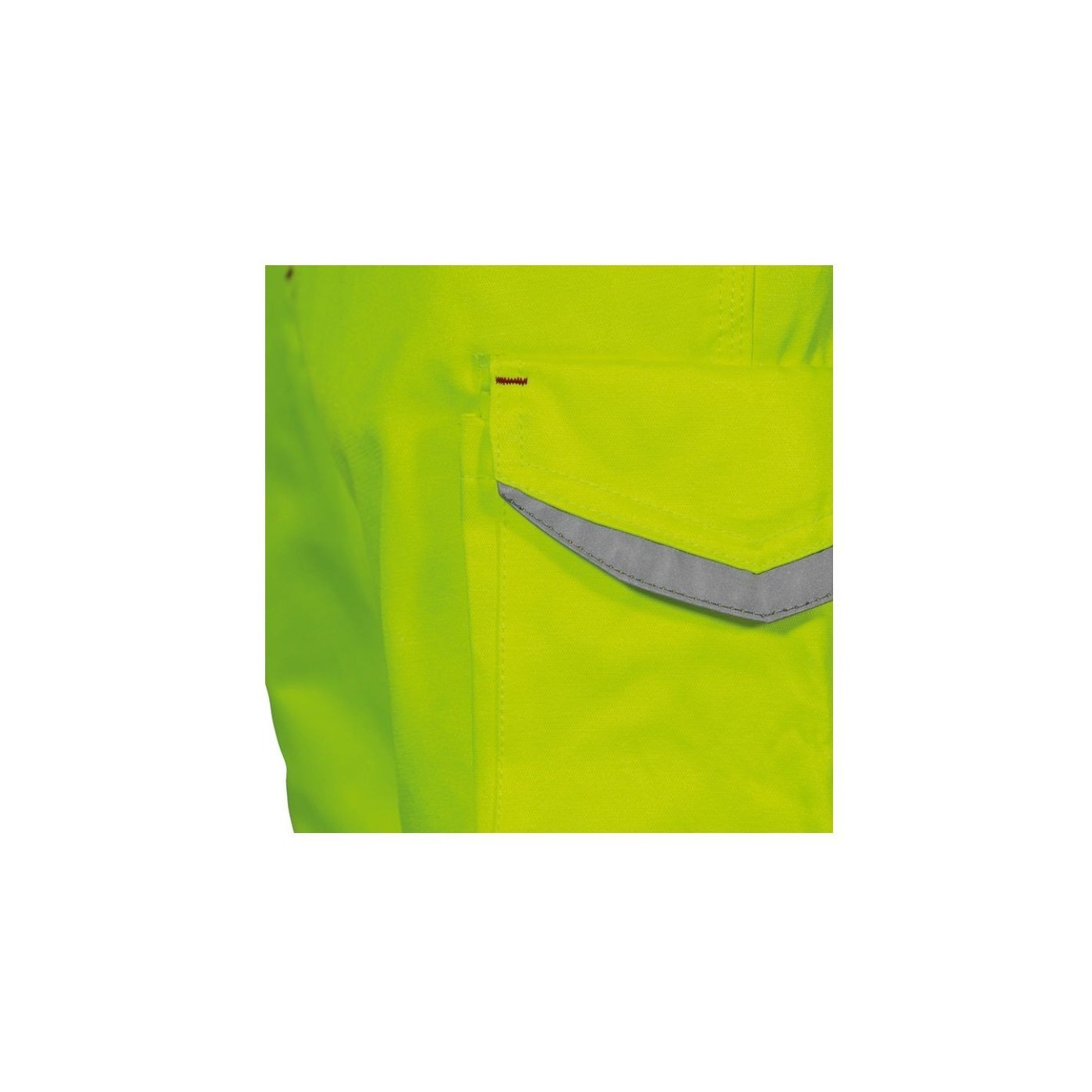 Inserts reflectors 3M Butxaca portamòbil amb teixit aïllant E-CARE Cort ergonòmic de les cames i genolls Butxaca al pit amb tancament de cremallera Inserit portabolígrafos Amplis butxaques davanteres Butxaca portamonedes Dobles butxaques del darrere, un en tapeta Butxaca porta metre Butxaca a la cama Passador portamartillo Cintura elàstica Tirant ajustable amb tancament a enganxament Gramaje estiu