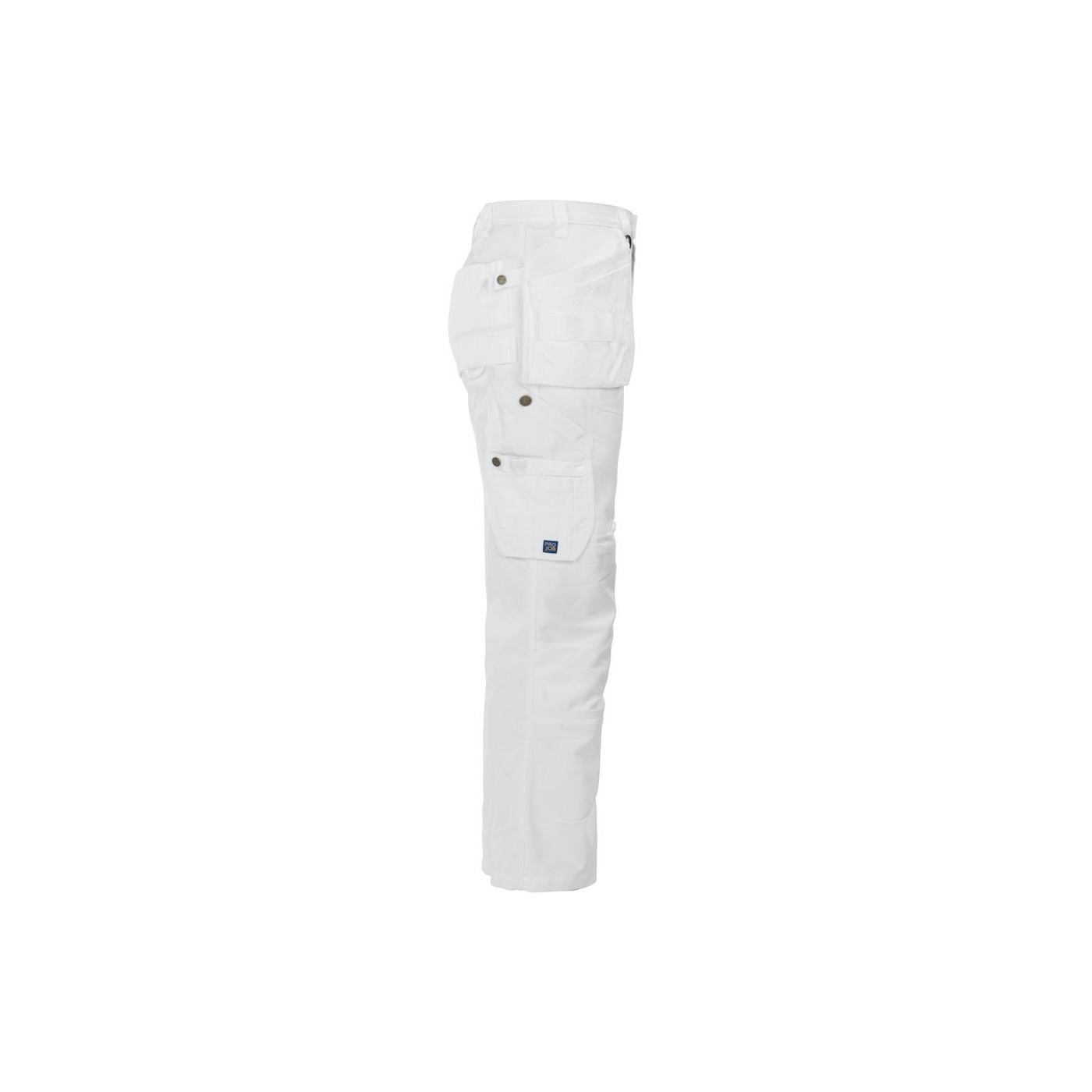 - Dues butxaques penjants per guardar petites peces metàl·liques (claus) que es poden amagar. Els penjolls porten butxaques extres, un d'ells amb travetes per a eines, reforçats de Cordura. Butxaques tipus "càrrec pocket" amb compartiments per a mòbil, bolígraf i eines. Butxaca per metre, dues travetes ajustables per penjar el martell i dues anelles per penjar claus. Extra protecció de Cordura per als genolls amb obertura interior i alçada ajustable. La part baixa darrere de les cames està reforçada amb Cordura. Les butxaques del darrere i "càrrec pockets" tenen travetes per penjar els nostres Inbags.% cotó, 330 g/m². Reforços: 100% poliéster/poliamida, Als genolls: Cordura®