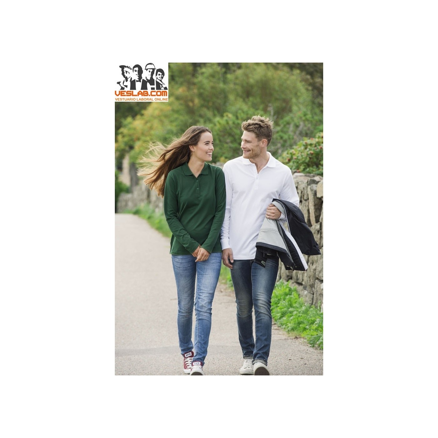 Pol clàssic de màniga llarga per dona. Tres botons en tapeta. Canalé en coll. Cotó pentinat pre-encongit. Obertures laterals.