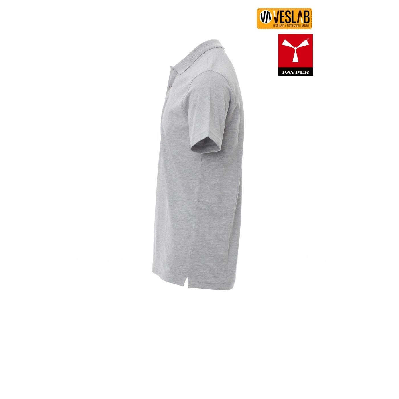Samarreta polo de màniga curta amb 3 botons a joc en color perla, obertures laterals, costures del coll cobertes amb cinta a joc.