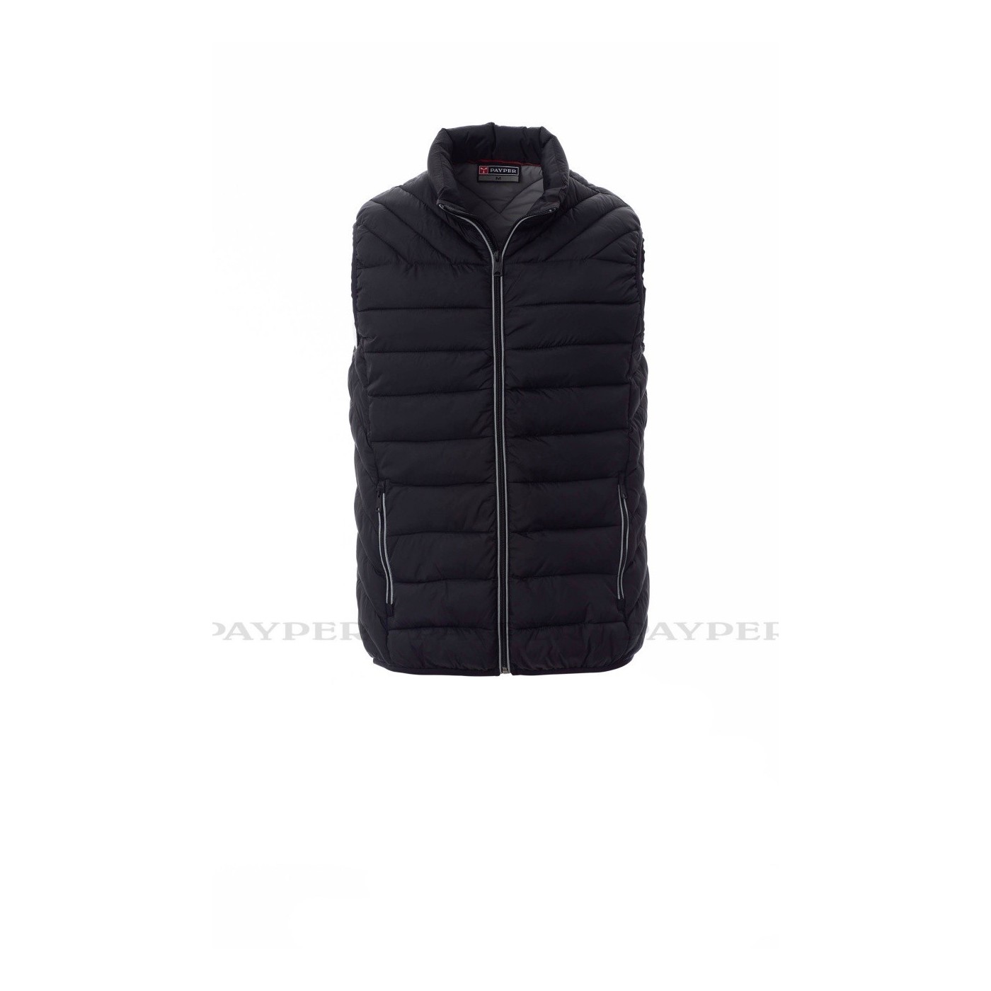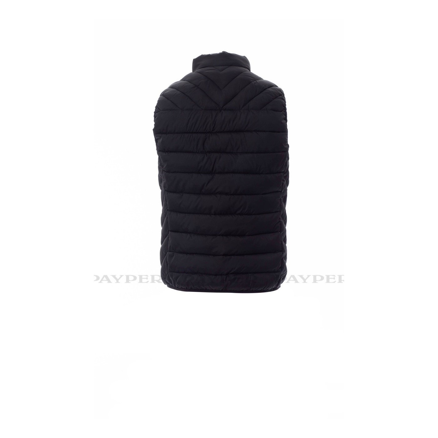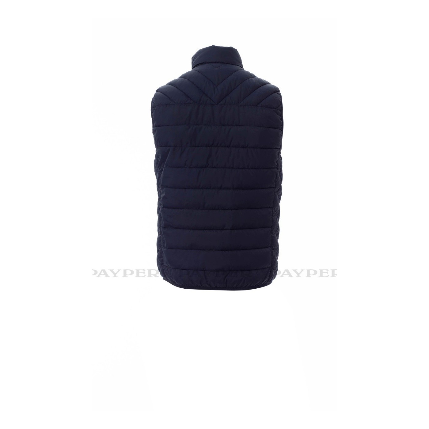 Es tracta d'una jaqueta / anorac de plomes sense mànigues per a home, amb tancament de cremallera de 5 mm de plàstic amb cursor de metall, té la vora de la cintura prima i conté dues butxaques externes. L'interior està omplert amb polièster efecte ploma i té dues butxaques interiors.