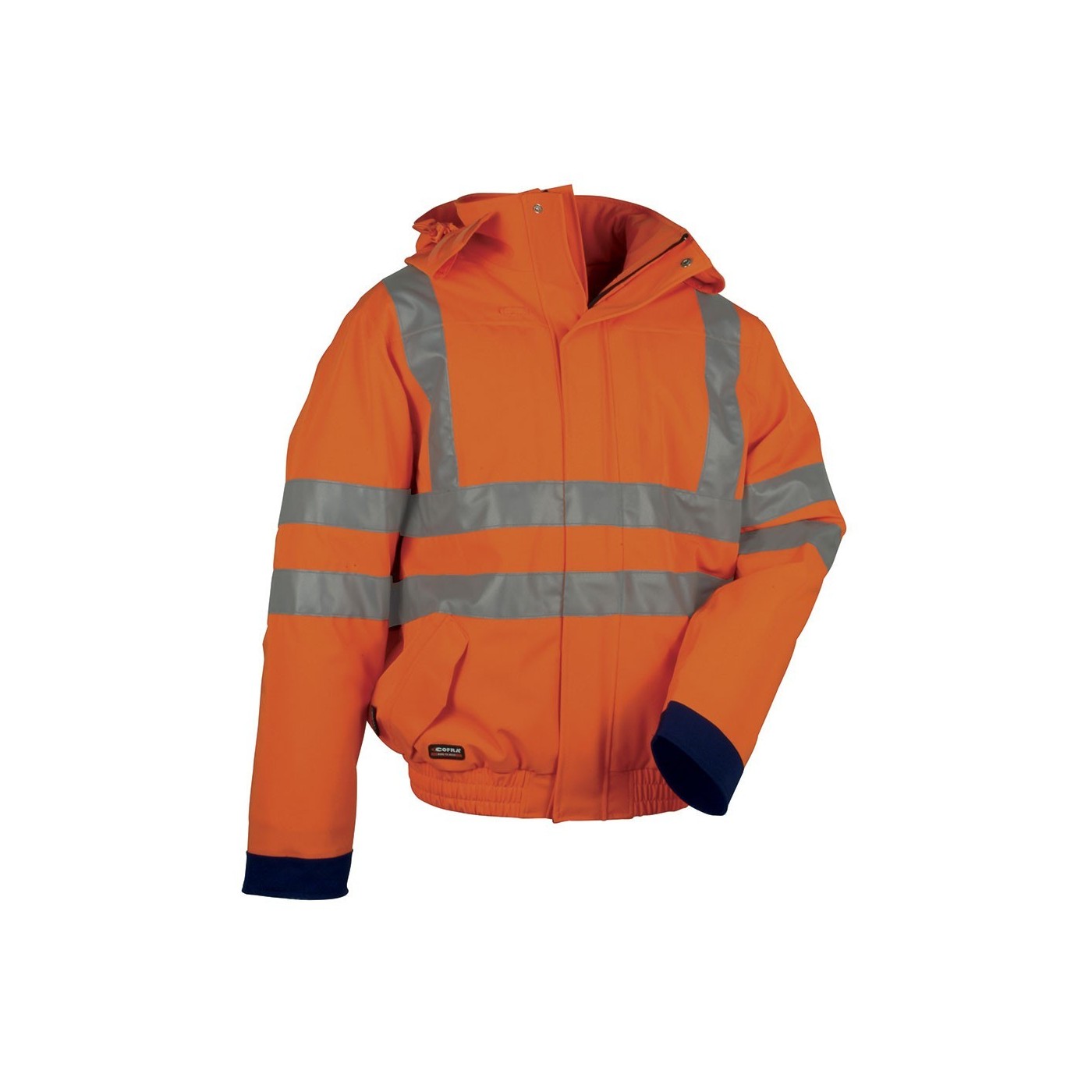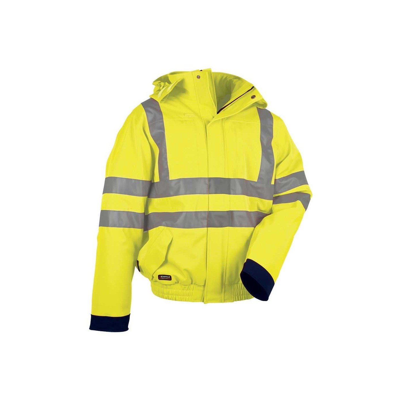 DESCRIPCIÓ: 2 butxaques davanteres amb velcro, 2 butxaques interiors en pit amb cremallera sota la solapa, 3M ™ Scotchlite ™ Reflective Material - 8906 Silver Fabric vertical i horitzontal, sota de la peça amb tanca de cremallera, sota de la peça i punys elàstics, caputxa desplegable, costures termosegellades, cremallera YKK ®, passador porta targeta
